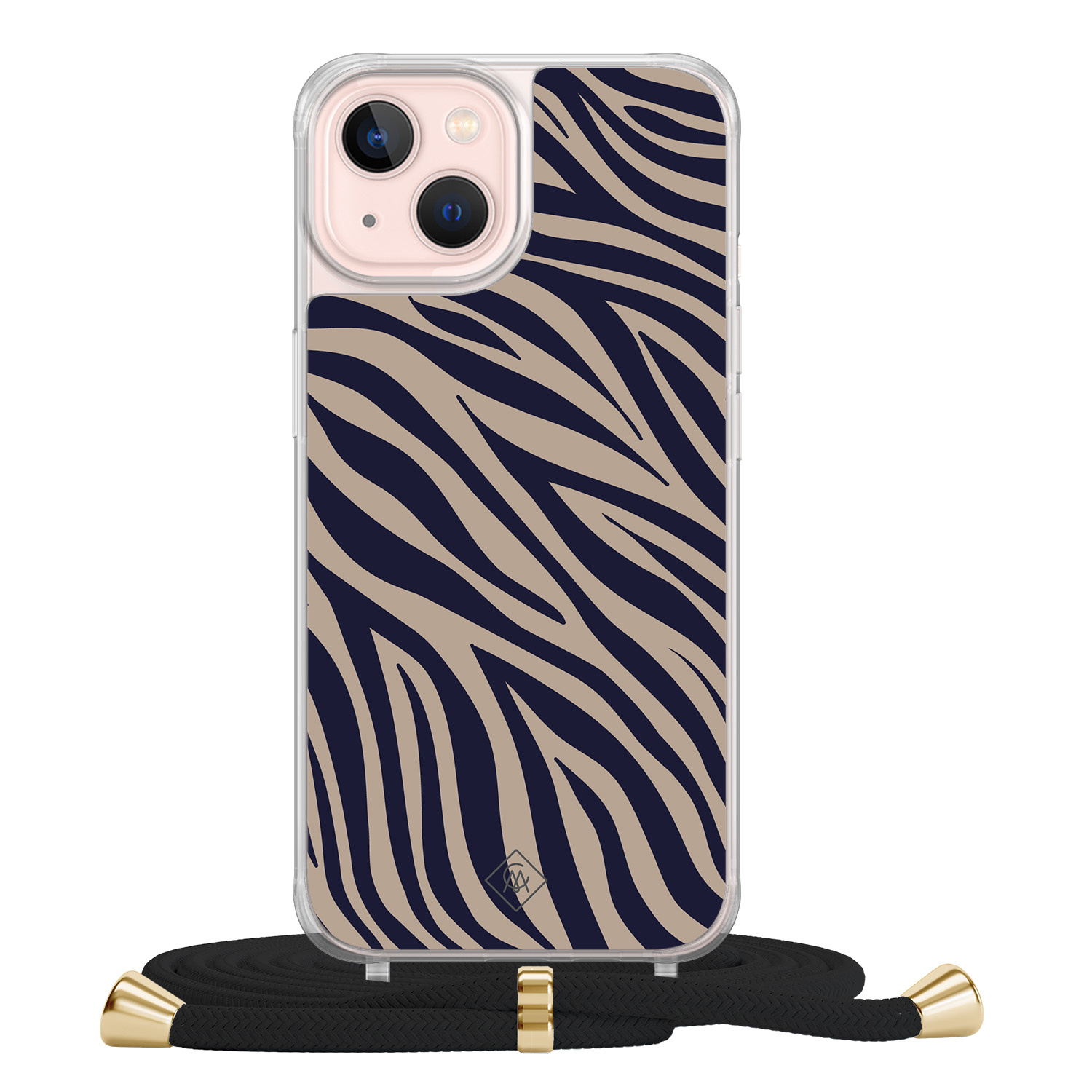 iPhone 13 hoesje met zwart koord - Chevron navy