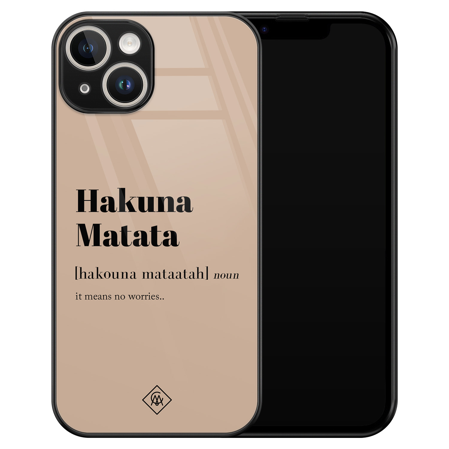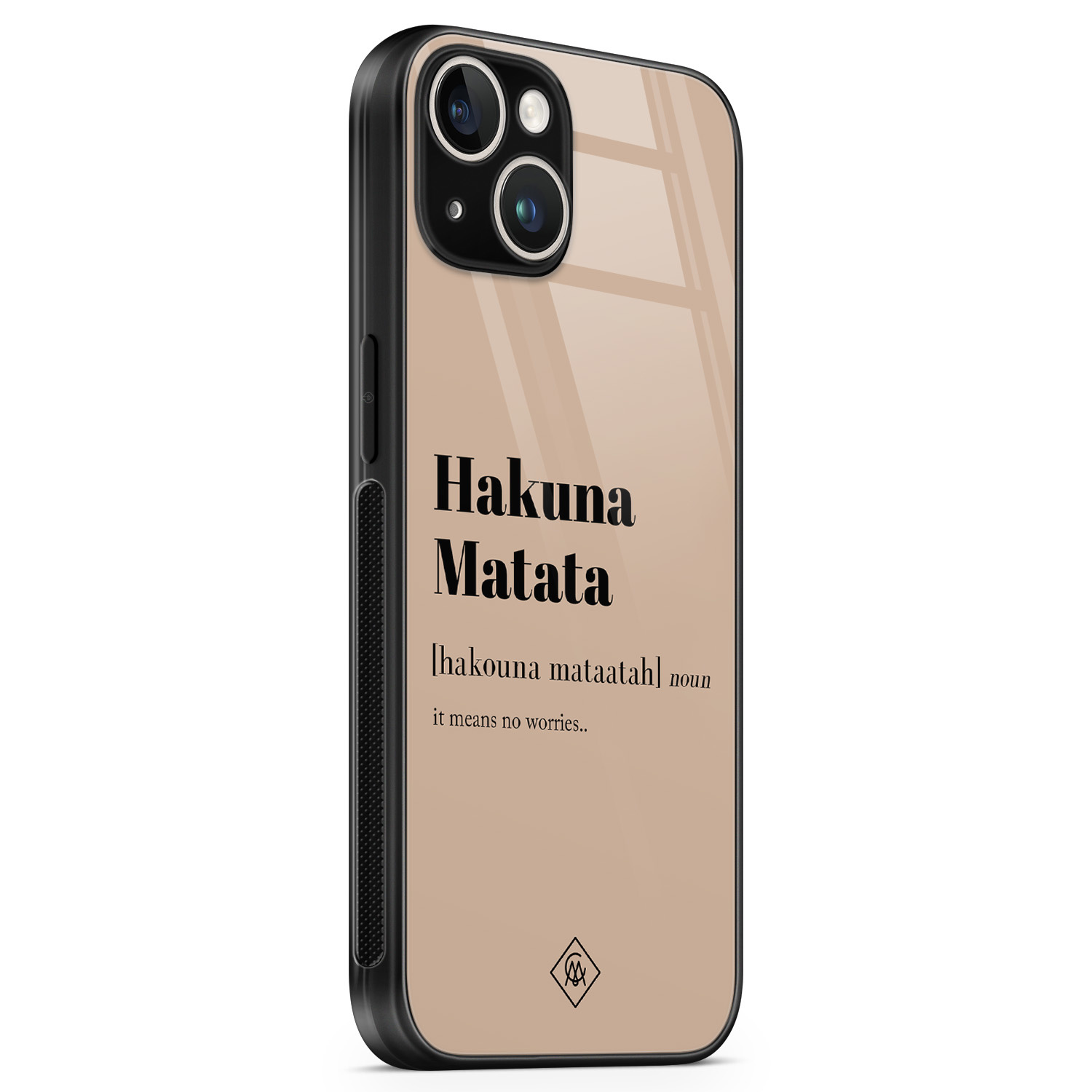 Dit telefoonhoesje met Hakuna Matata quote geeft een jouw iPhone 14 een unieke uitstraling. Alle benodigde uitsparingen zijn aanwezig. Tevens is draadloos opladen mogelijk dankzij de supersterke glasplaat op de achterkant.