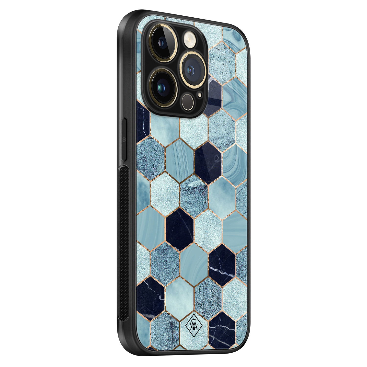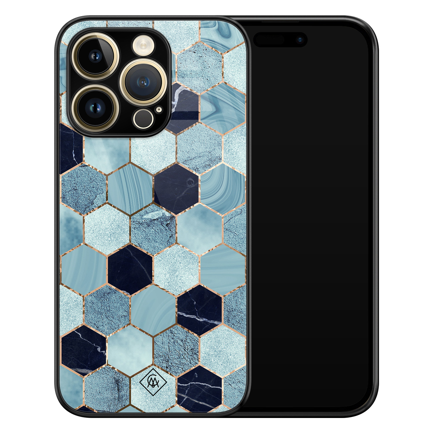 iPhone 14 Pro Max glazen hardcase - Blue cubes