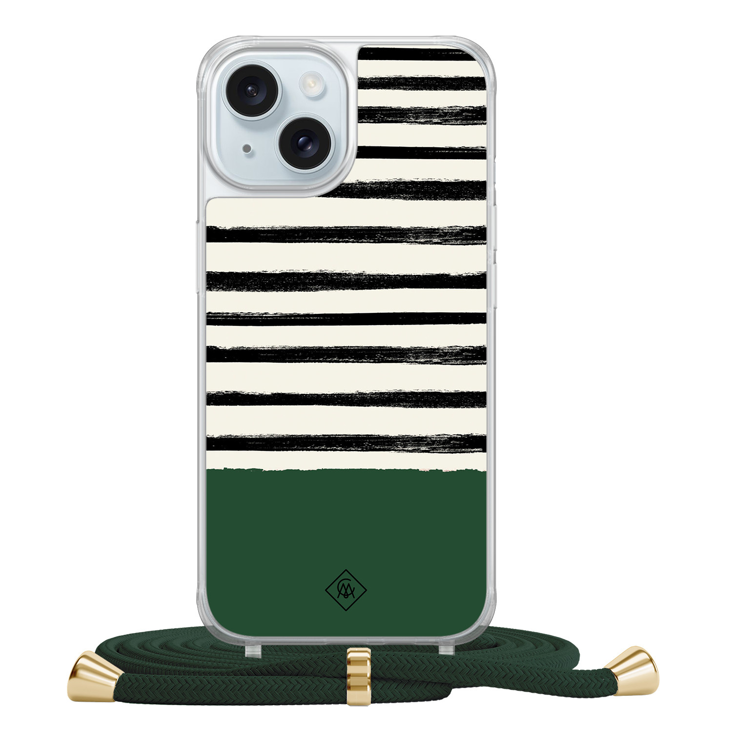 iPhone 15 hoesje met groen koord - Green stripes