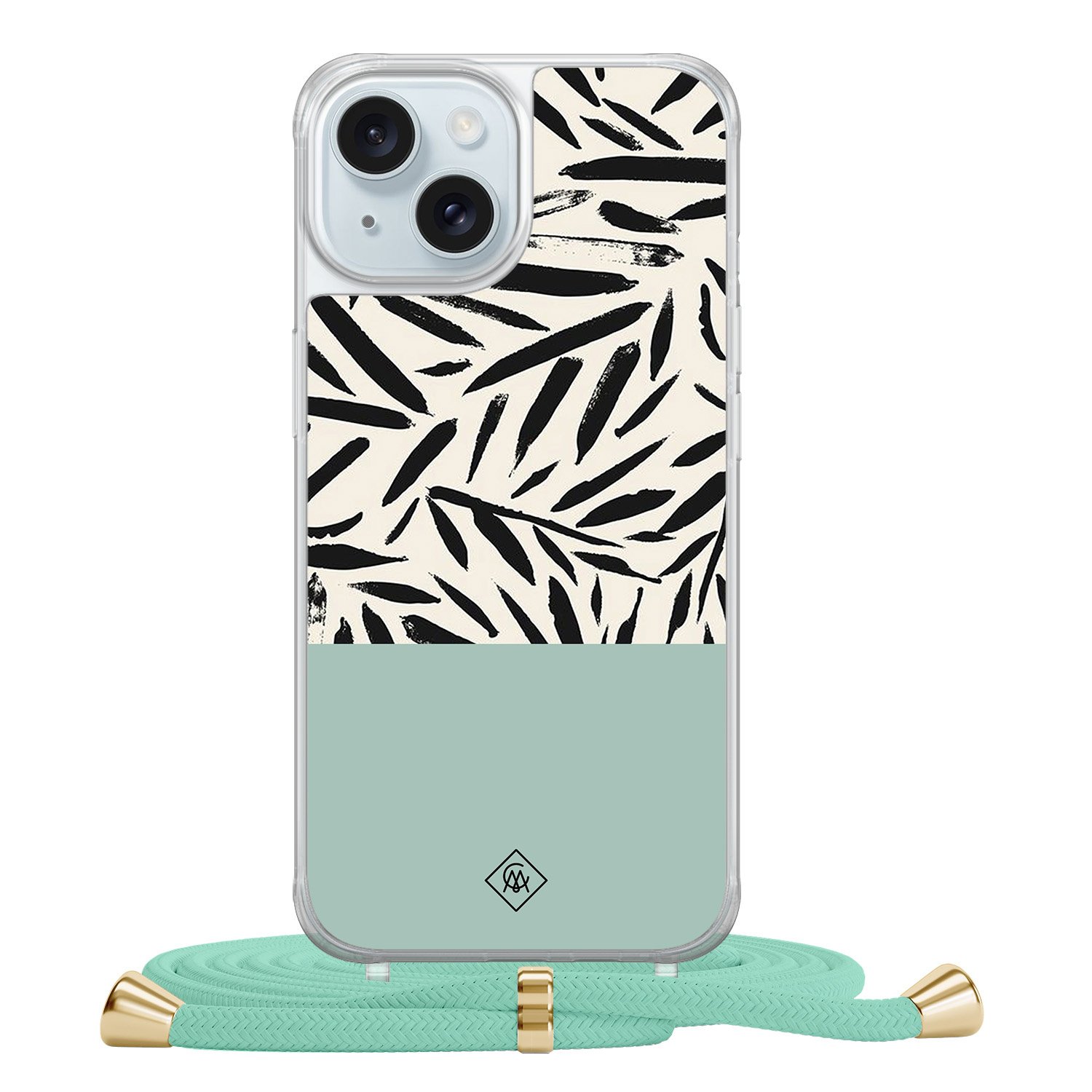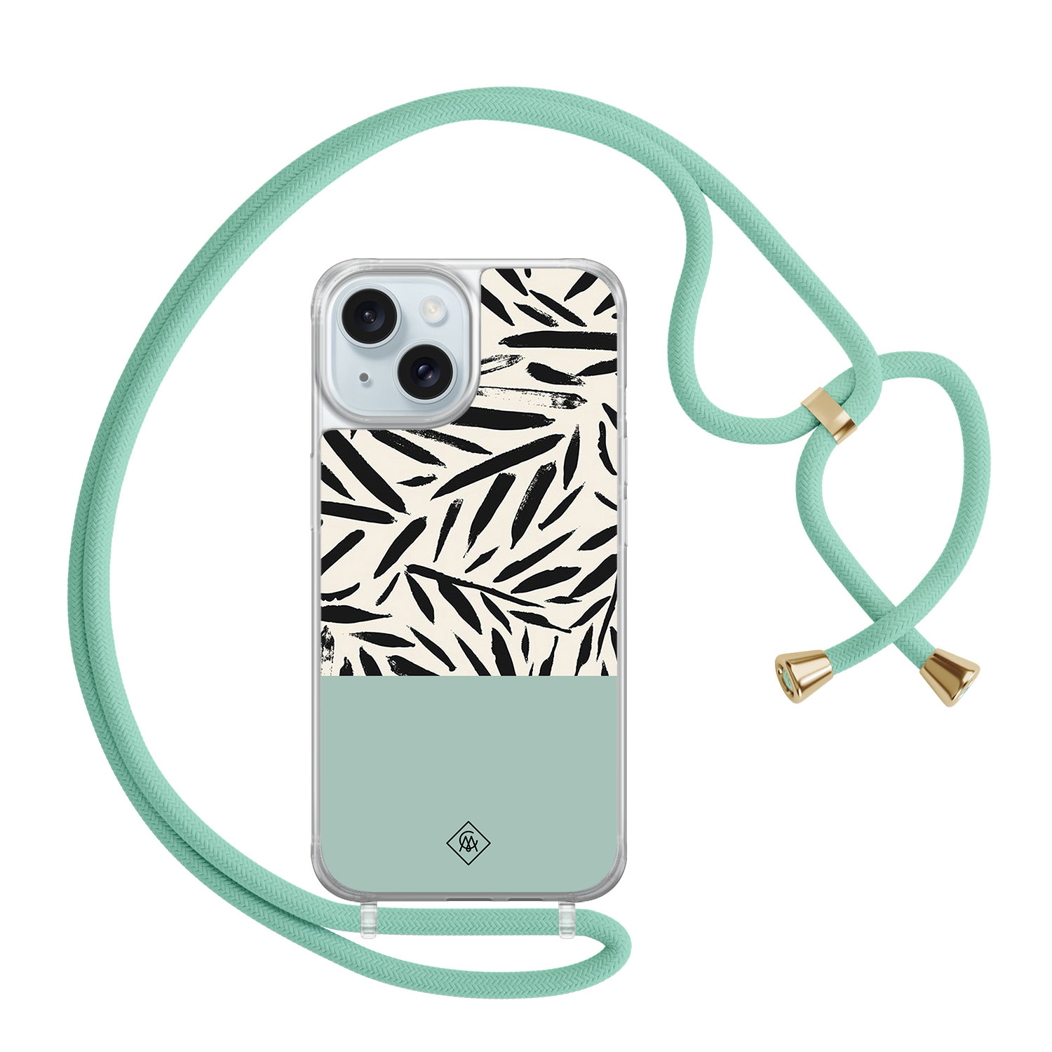 iPhone 15 hoesje met mint koord - Abstract mint palms