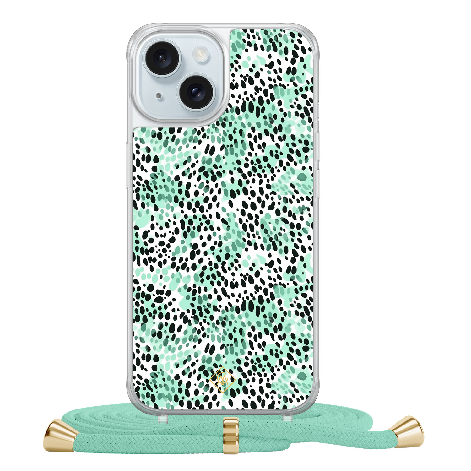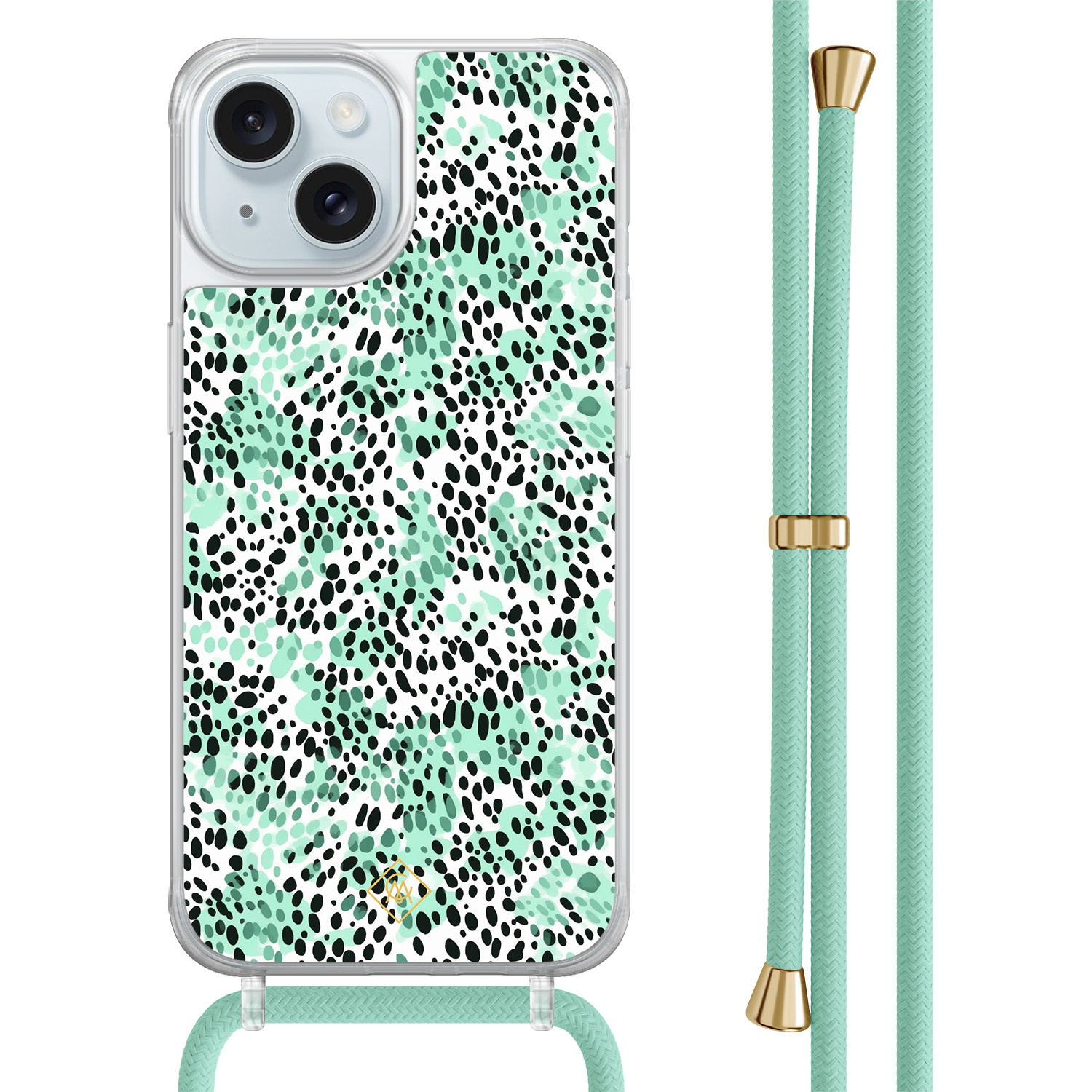 iPhone 15 hoesje met mint koord - Luipaard mint