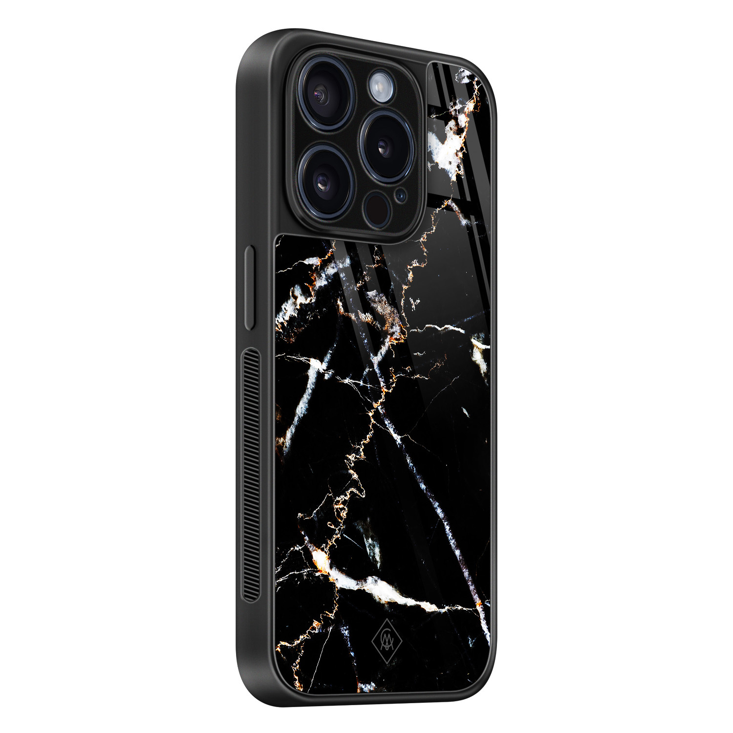 iPhone 15 Pro glazen hardcase - Marmer zwart