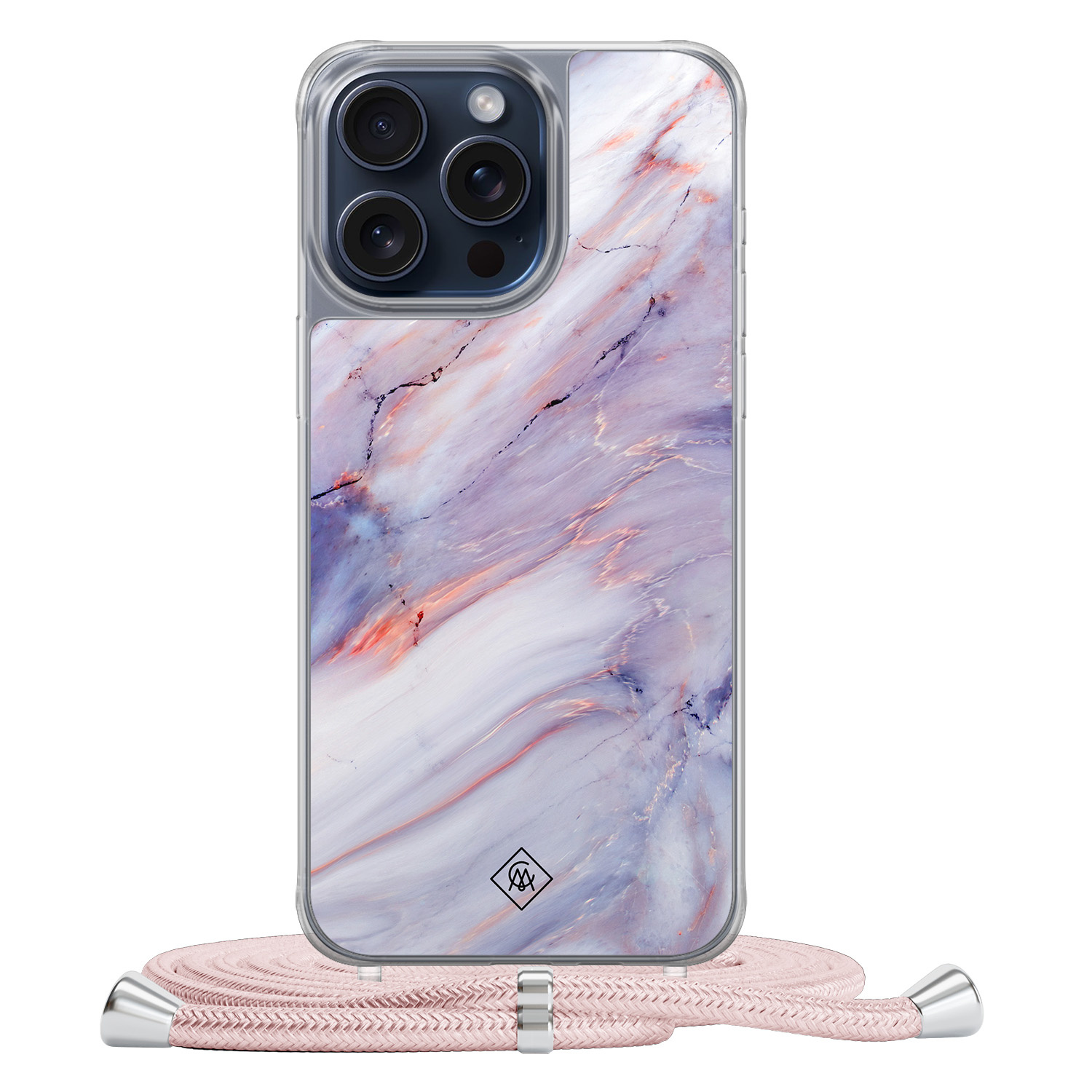 iPhone 15 Pro Max hoesje met rosegoud koord - Marmer paars