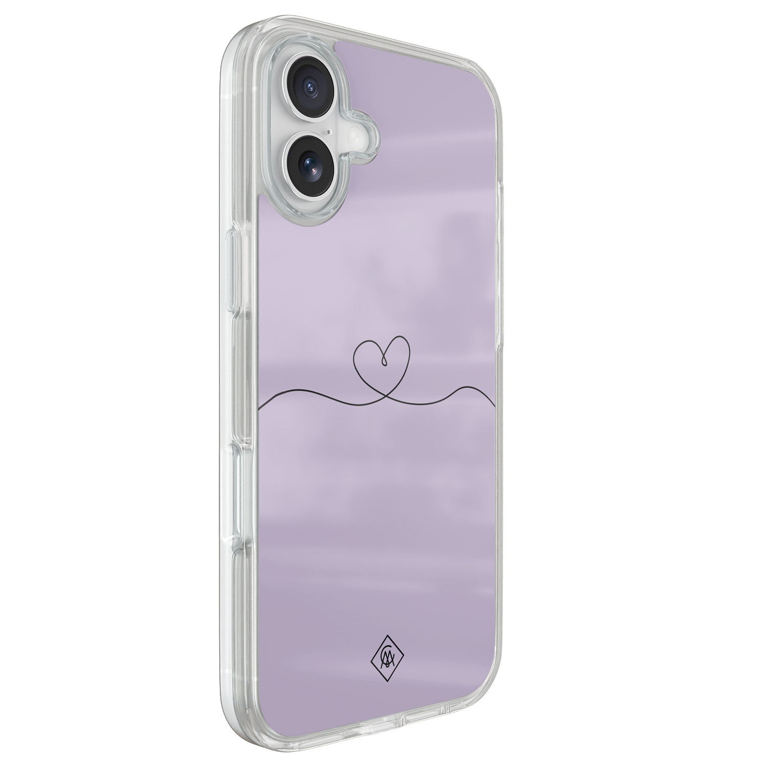 Toon je liefde voor je iPhone 16 met dit hoesje in hartvormig lila design. Het combineert schoonheid en bescherming dankzij de zachte binnenhoes en stevige achterkant. Ondanks de robuuste bescherming behoudt het zijn slanke uitstraling.