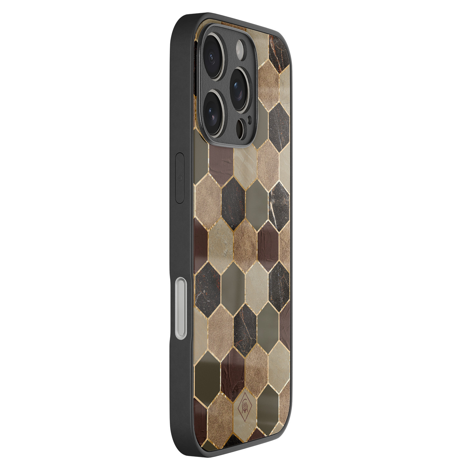 iPhone 16 Pro glazen hardcase - Kubus bruin groen