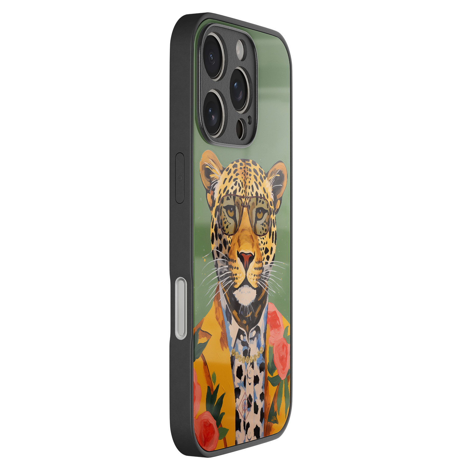 iPhone 16 Pro glazen hardcase - Luipaard hipster