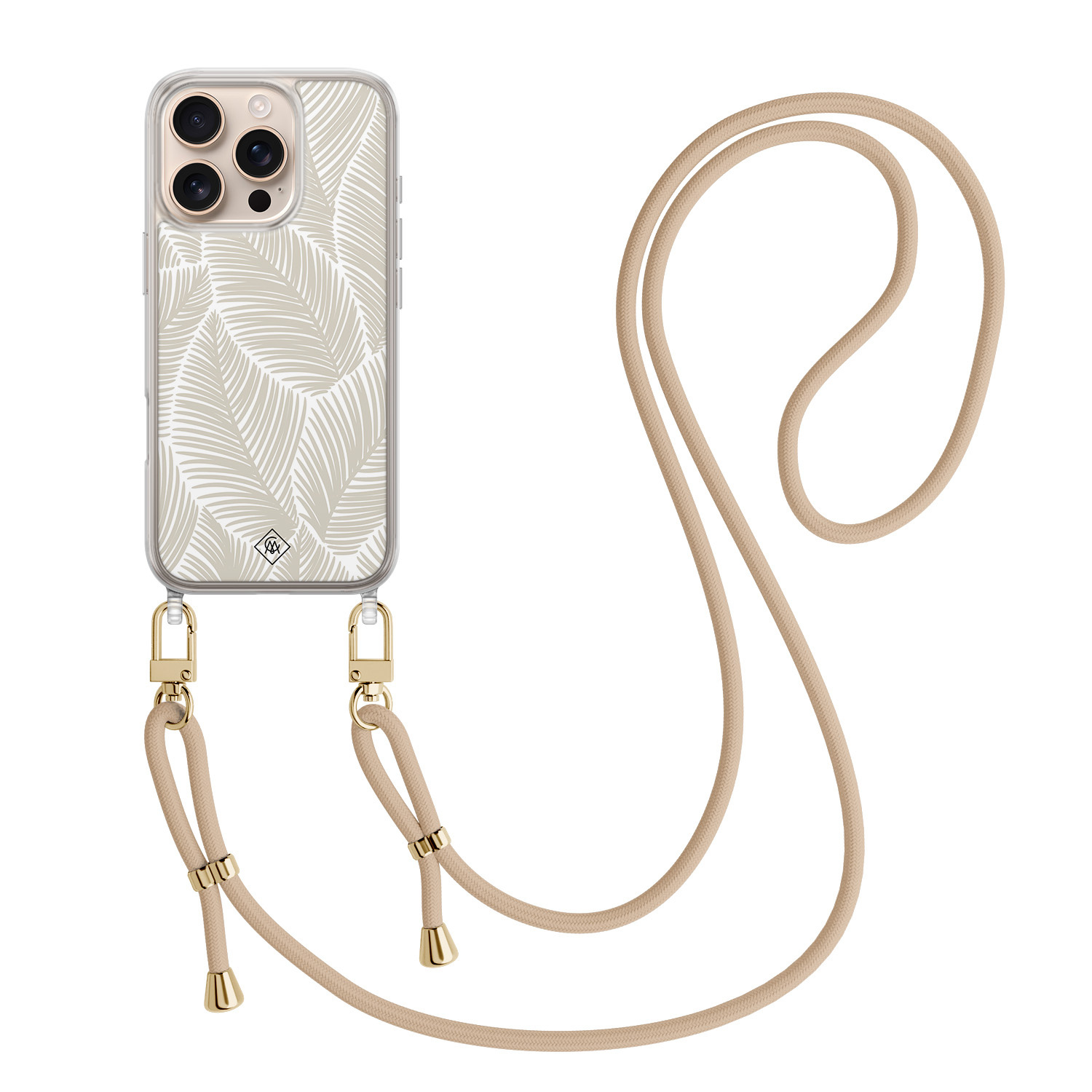 iPhone 16 Pro Max hoesje met beige koord - Palm leaves beige