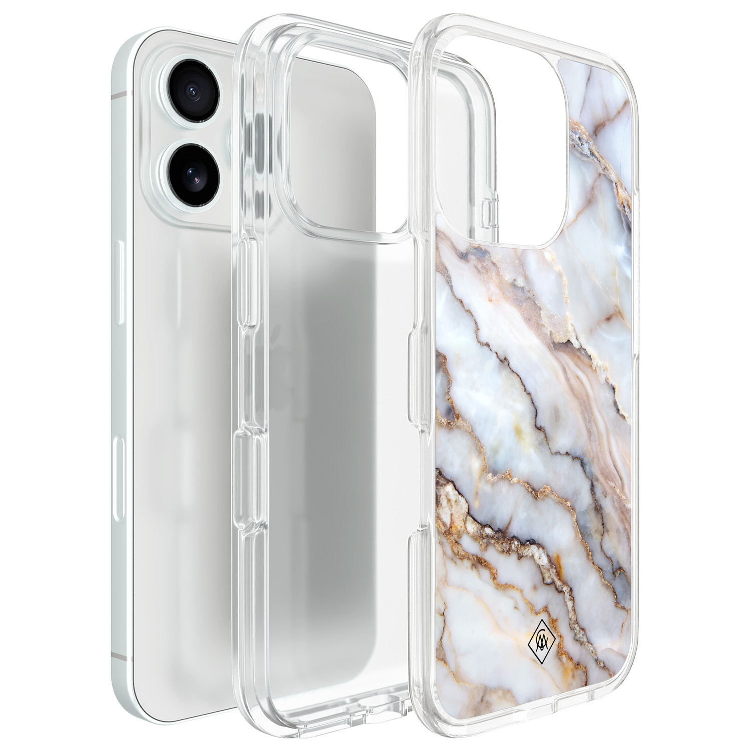 Een marmerlook met luxe details voor een verfijnde uitstraling. Dit hybride hoesje combineert een zachte binnenkant met een stevige buitenkant voor optimale bescherming. De transparante randen laten je iPhone 16 Pro Max kleur subtiel doorschijnen.