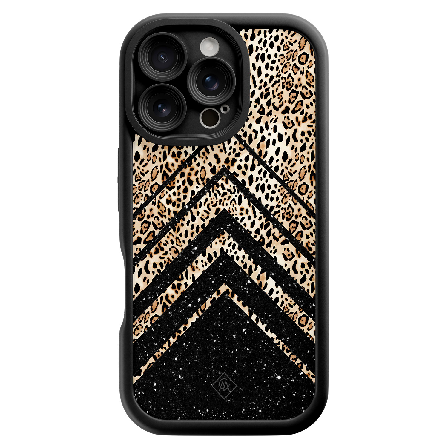 iPhone 16 Pro zwarte case - Chevron luipaard