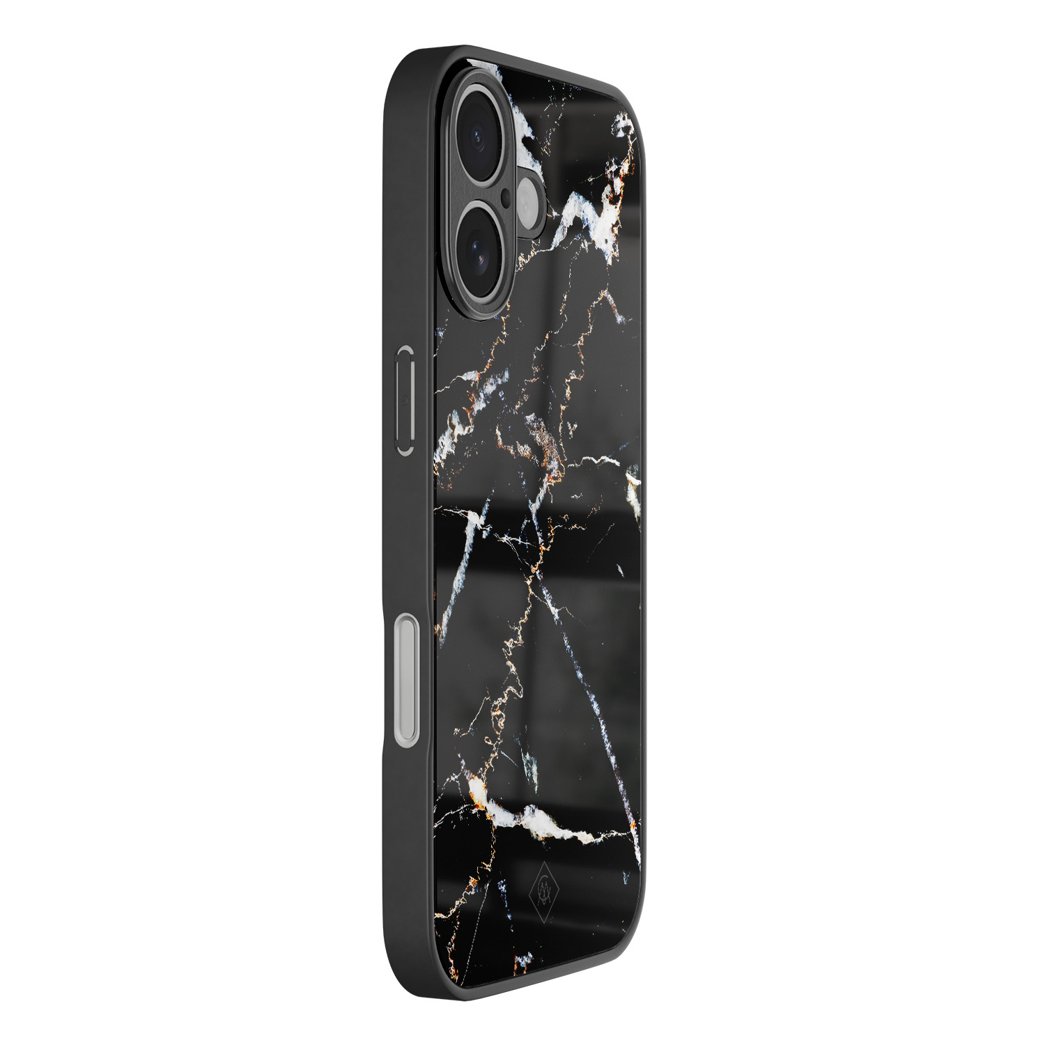 Dit iPhone 17 hoesje met glanzende achterkant en TPU-bumper valt onder de sterkste telefoonhoesjes met marmer look die er te verkrijgen zijn. De bumper is voorzien van opstaande randen zodat je smartphone niet snel een plat oppervlak raakt.