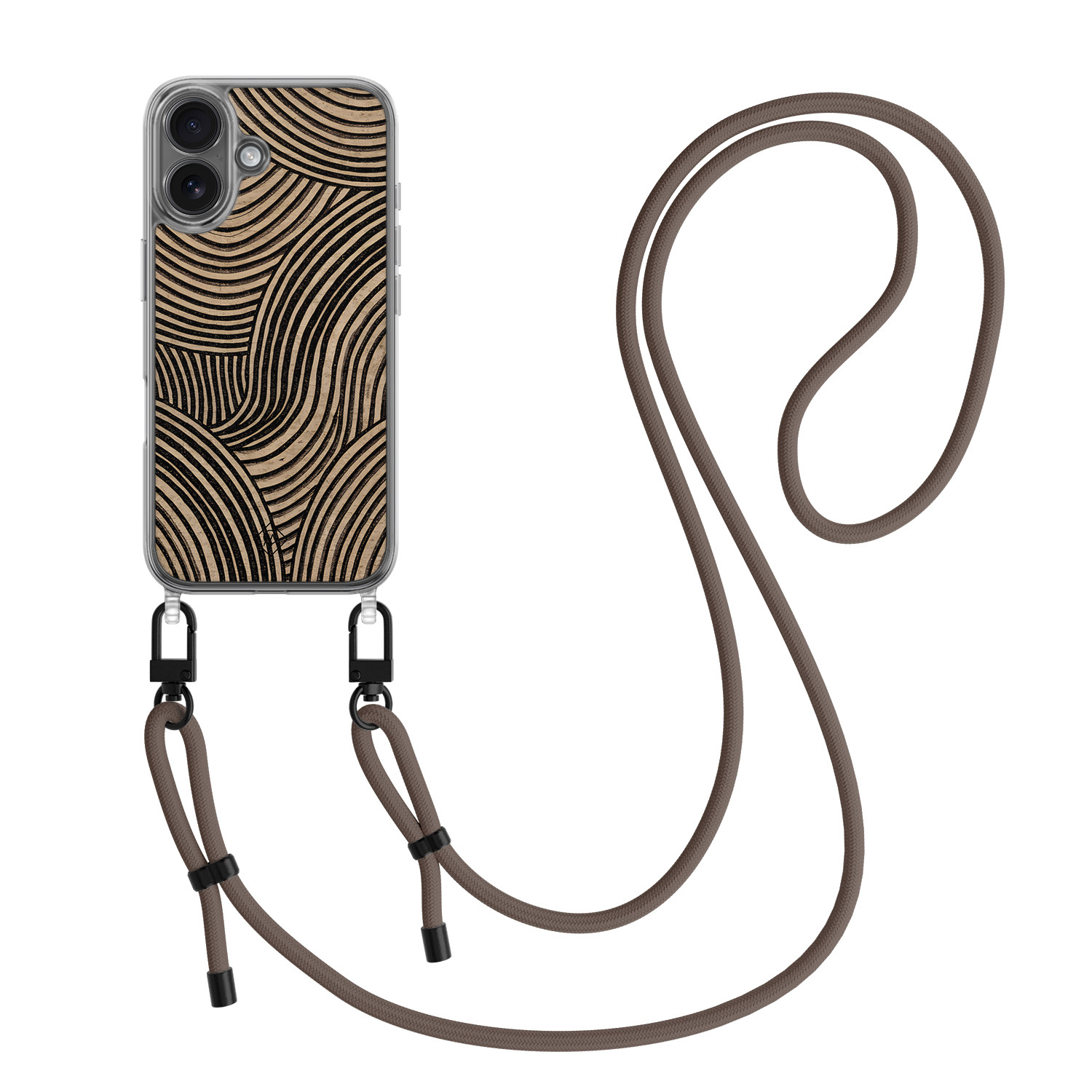 Verlies jezelf in de golvende lijnen van dit abstracte kunstwerkje. Het patroon, dat doet denken aan zandduinen bij schemering, geeft je iPhone 17 een unieke, artistieke flair. Het donkerbruine koord maakt de natuurlijke, serene look helemaal af.