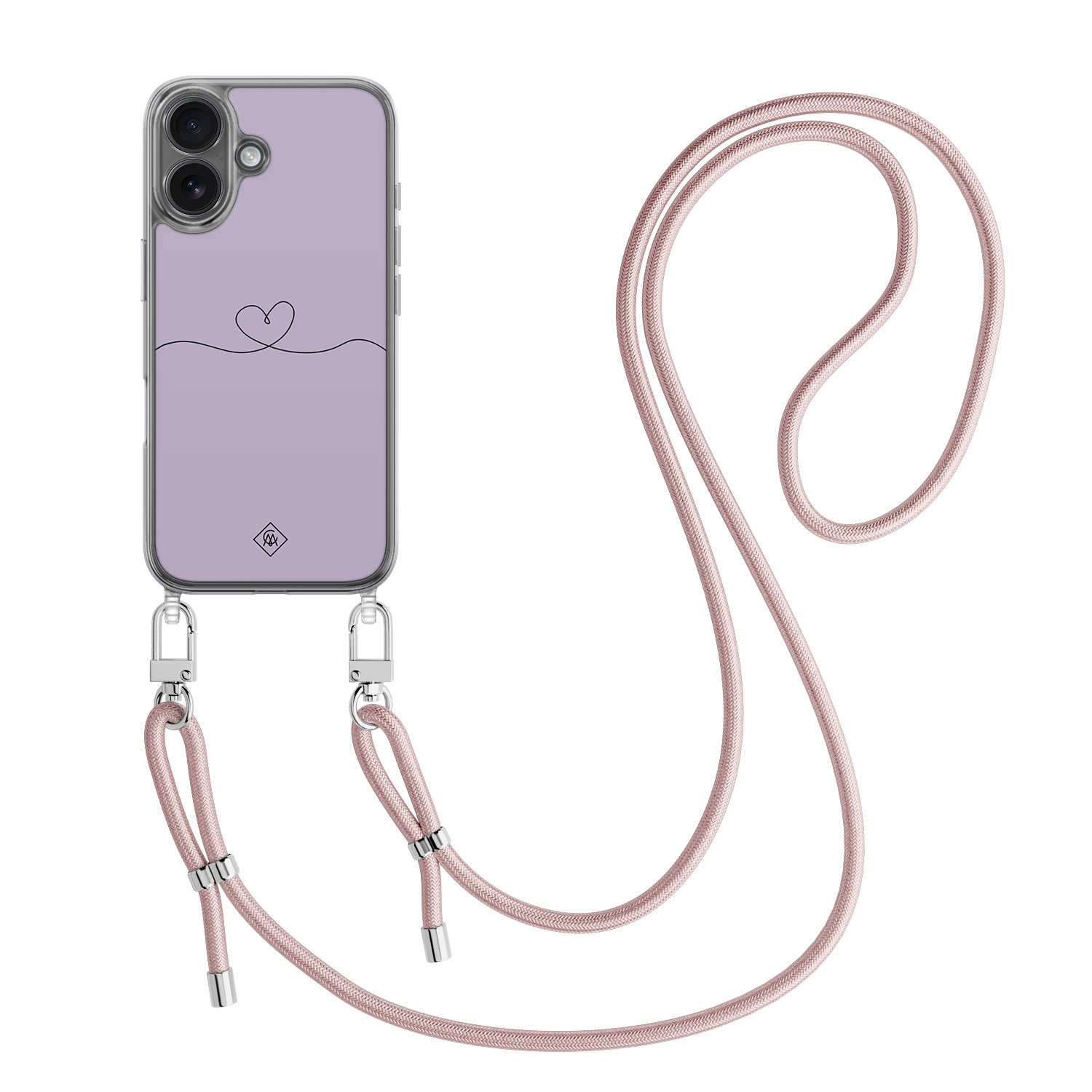 iPhone 17 hoesje met rosegoud koord - Hart lila