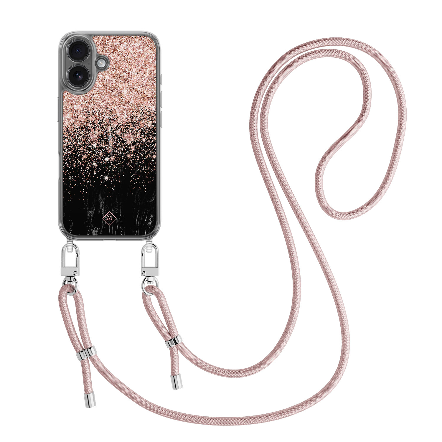 iPhone 17 hoesje met rosegoud koord - Marmer twist