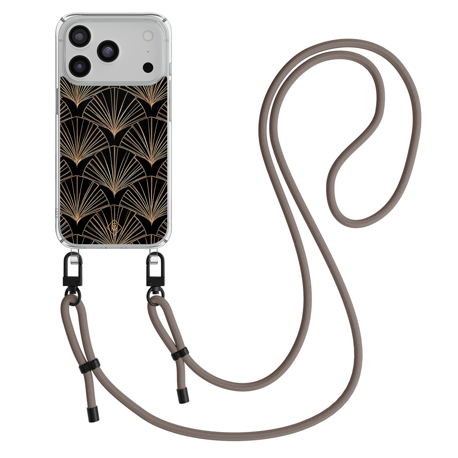 Breng de glamour van de Roaring Twenties naar je iPhone 17 Pro. Dit Art Deco hoesje combineert diepzwarte en gouden waaiers voor een tijdloze, chique uitstraling. Het donkerbruine koord voegt een moderne, stoere twist toe aan dit klassieke design.