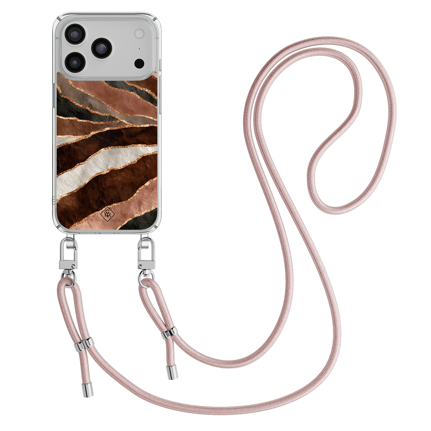 iPhone 17 Pro Max hoesje met rosegoud koord - Earth Agate
