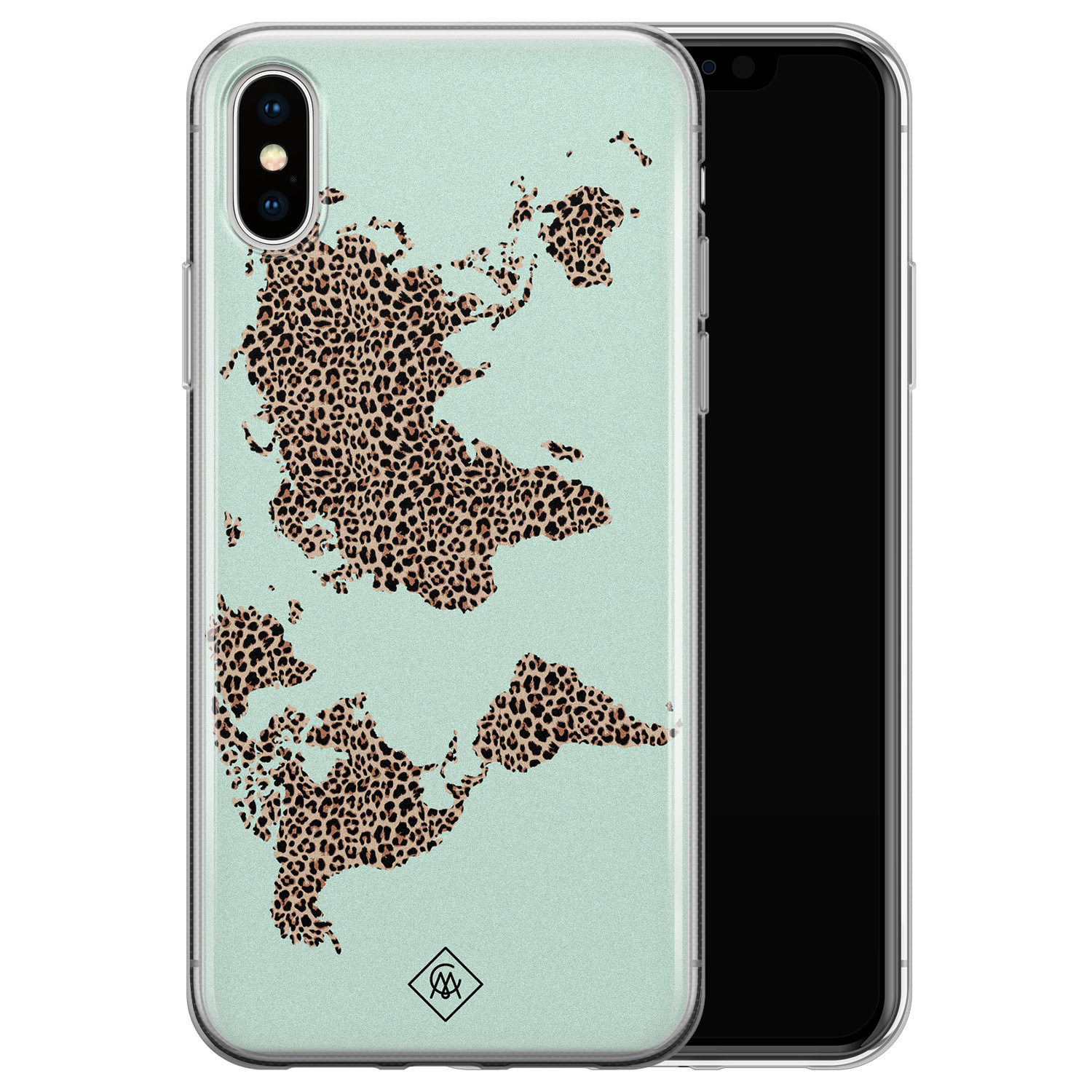 Een reislustig type? Dan mag dit hoesje met wereldkaart en luipaard print niet in je collectie ontbreken. De iPhone X/XS hoes is gemaakt van siliconen. Dankzij het opstaande randje komt je telefoon niet aanraking met een plat oppervlak.