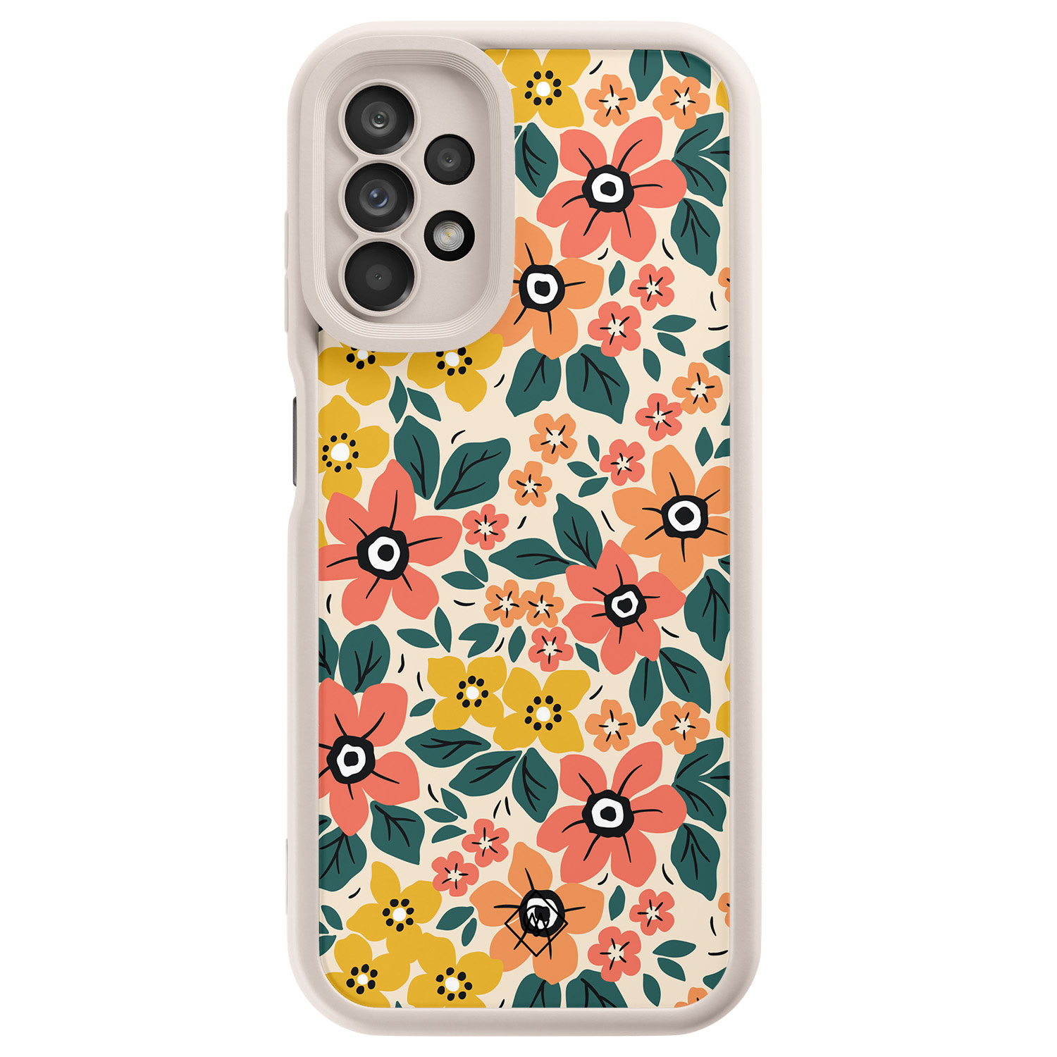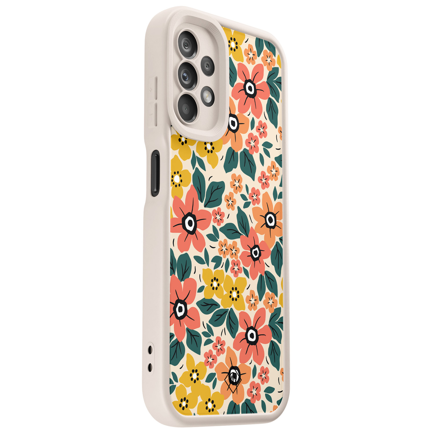 De 'Blossom' case laat je Samsung A13 4G bloeien met stijl. Beige tinten en mooie bloemen bieden niet alleen een lentefris design, maar ook een stevige bescherming die toch slank blijft. Perfect voor de smartphonegebruiker die stijl belangrijk vindt.