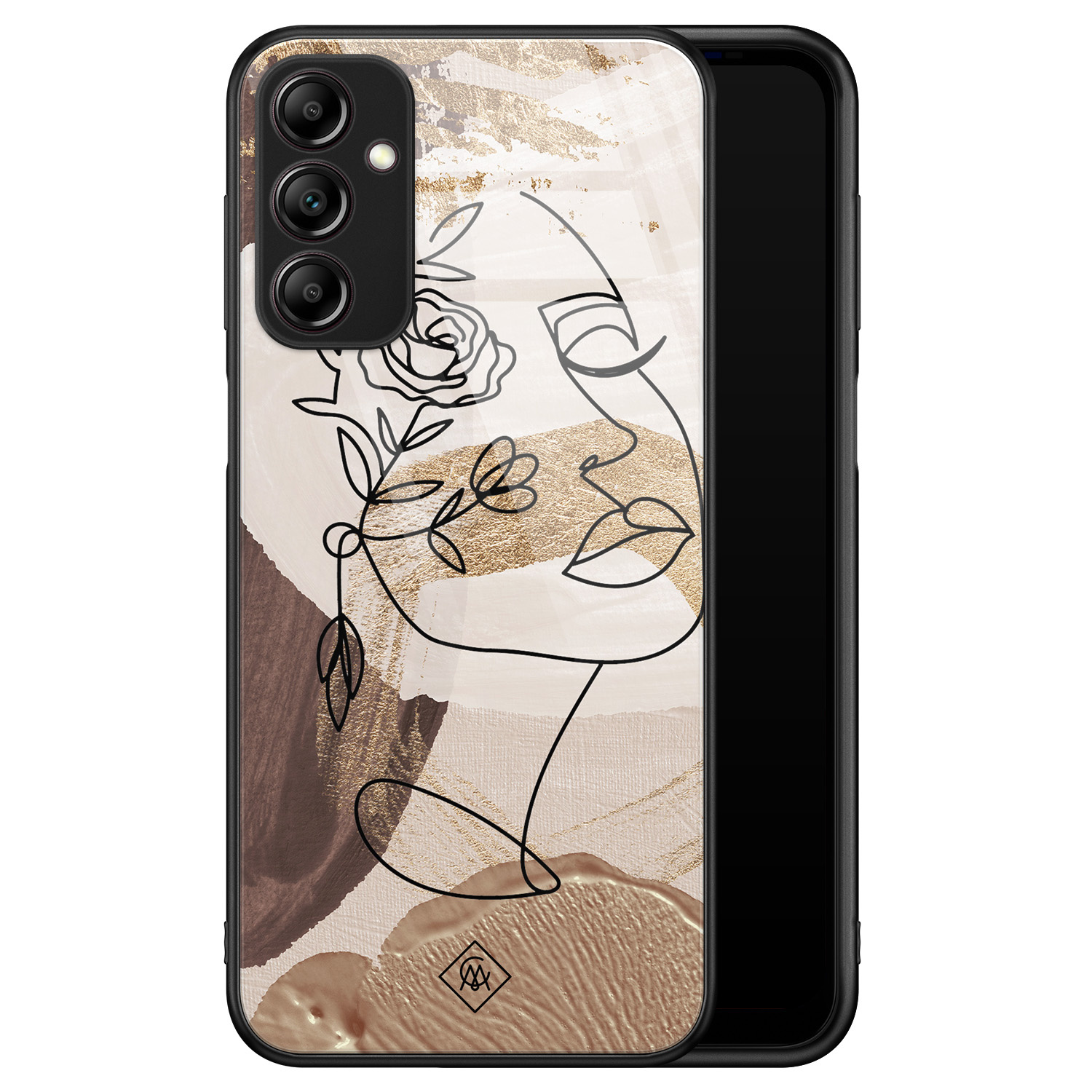Samsung Galaxy A14 glazen hardcase - Abstract gezicht bruin