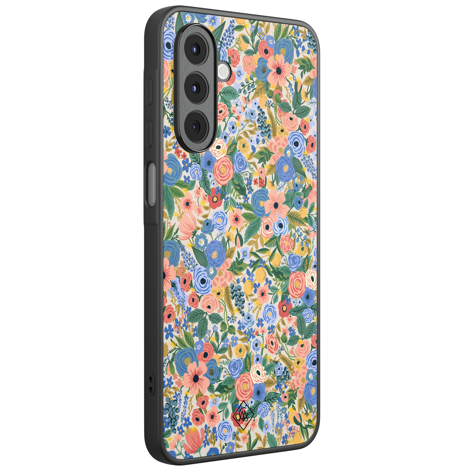 Dit Samsung Galaxy A17 hoesje geeft een tweelaagse bescherming: rubberen binnenkant en hard buitenframe verbeteren de valbescherming. Het bloemerige design op de achterzijde heeft een matte finish. Geschikt voor draadloos opladen.