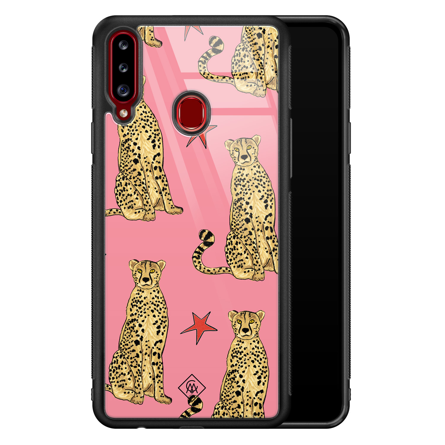 Samsung Galaxy A20s glazen hardcase - The pink leopard