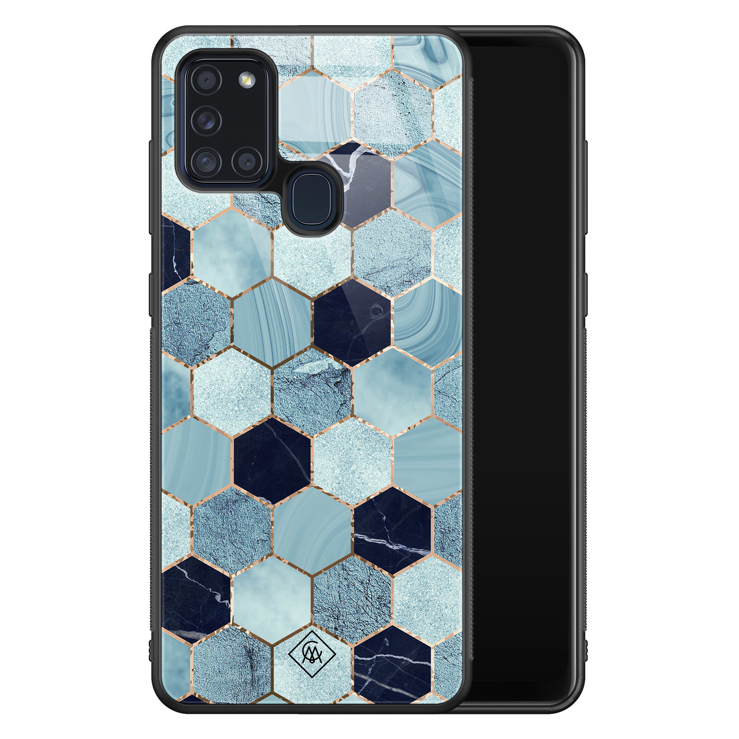 Samsung Galaxy A21s glazen hardcase - Blue cubes