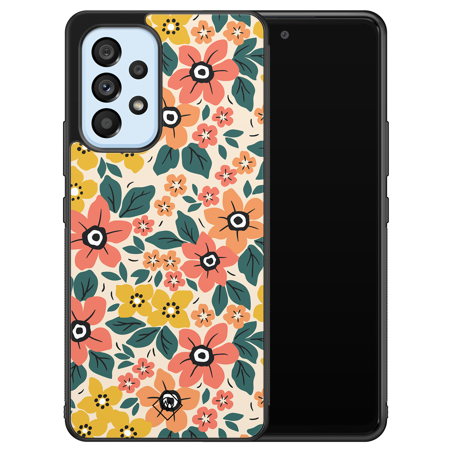 Dit Samsung Galaxy A33 telefoonhoesje is een hardcase met bloemenprint. De matzwarte bumper is vervaardigd uit TPU materiaal. Dankzij de subtiele opstaande randen wordt je scherm ook ongezien beschermd.