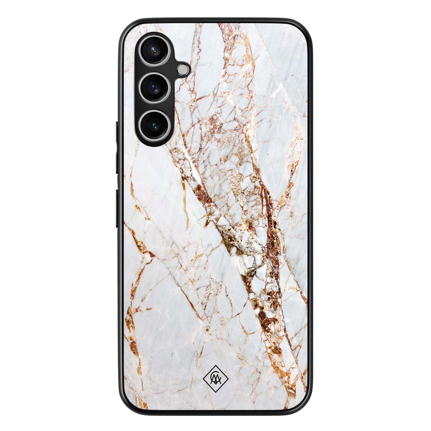 Stevig Samsung Galaxy A34 telefoonhoesje met gouden marmer print. Er zijn handige uitsparingen, zelfs de camera met flitser is volledig te gebruiken. De hoes biedt grip en heeft subtiel opstaande randen om ook je scherm ongezien te beschermen.