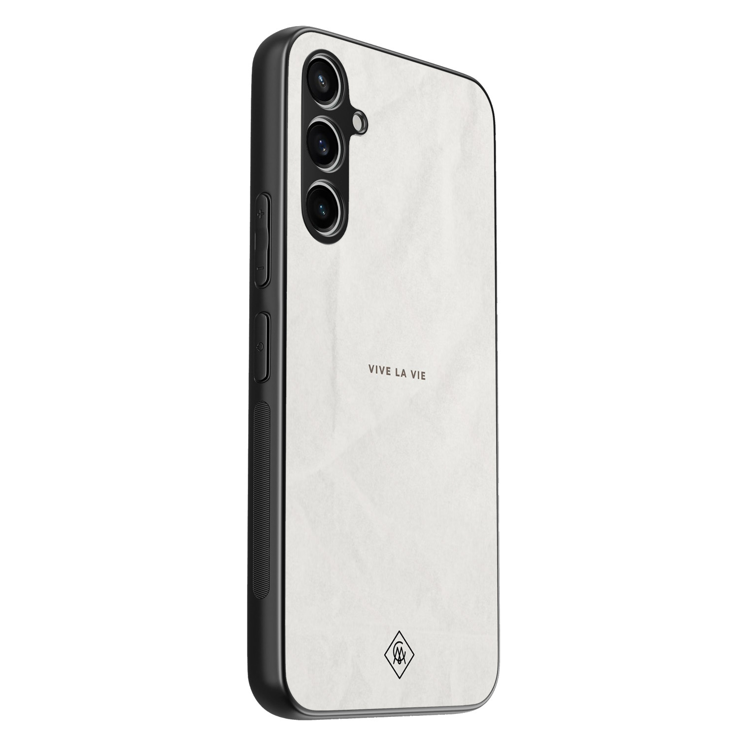 Bescherm jouw Samsung Galaxy A34 met dit Vive la vie hoesje. Ondanks de stevige bescherming met cameralensbescherming behoudt het hoesje een slank profiel, wat zorgt voor een comfortabele grip en een stijlvolle uitstraling.