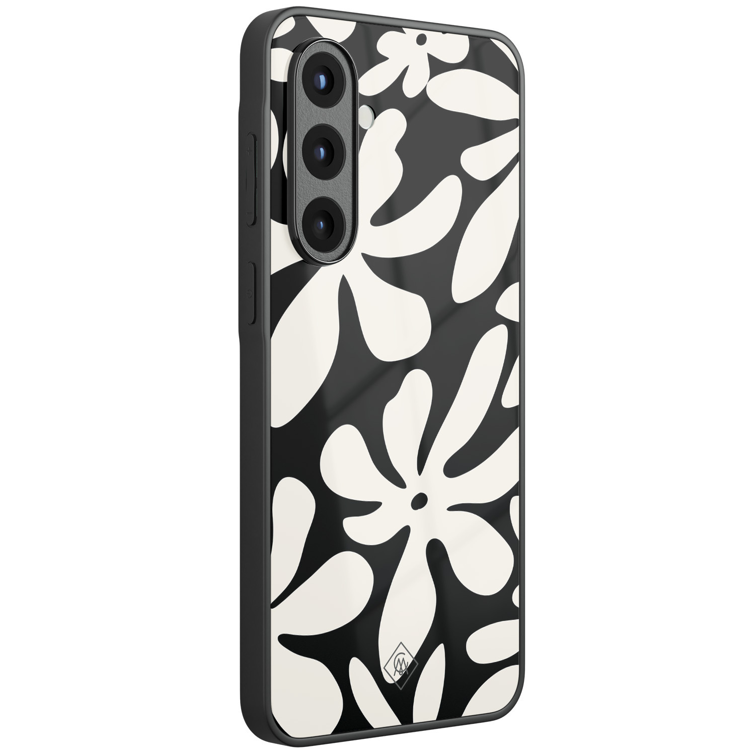 Modieus Samsung Galaxy A57 telefoonhoesje met zwart bloemen design. De hoes biedt bescherming tegen stof, krassen, vallen en andere dagelijkse beschadigingen. De matzwarte TPU bumper is schokbabsorberend en vormvast.