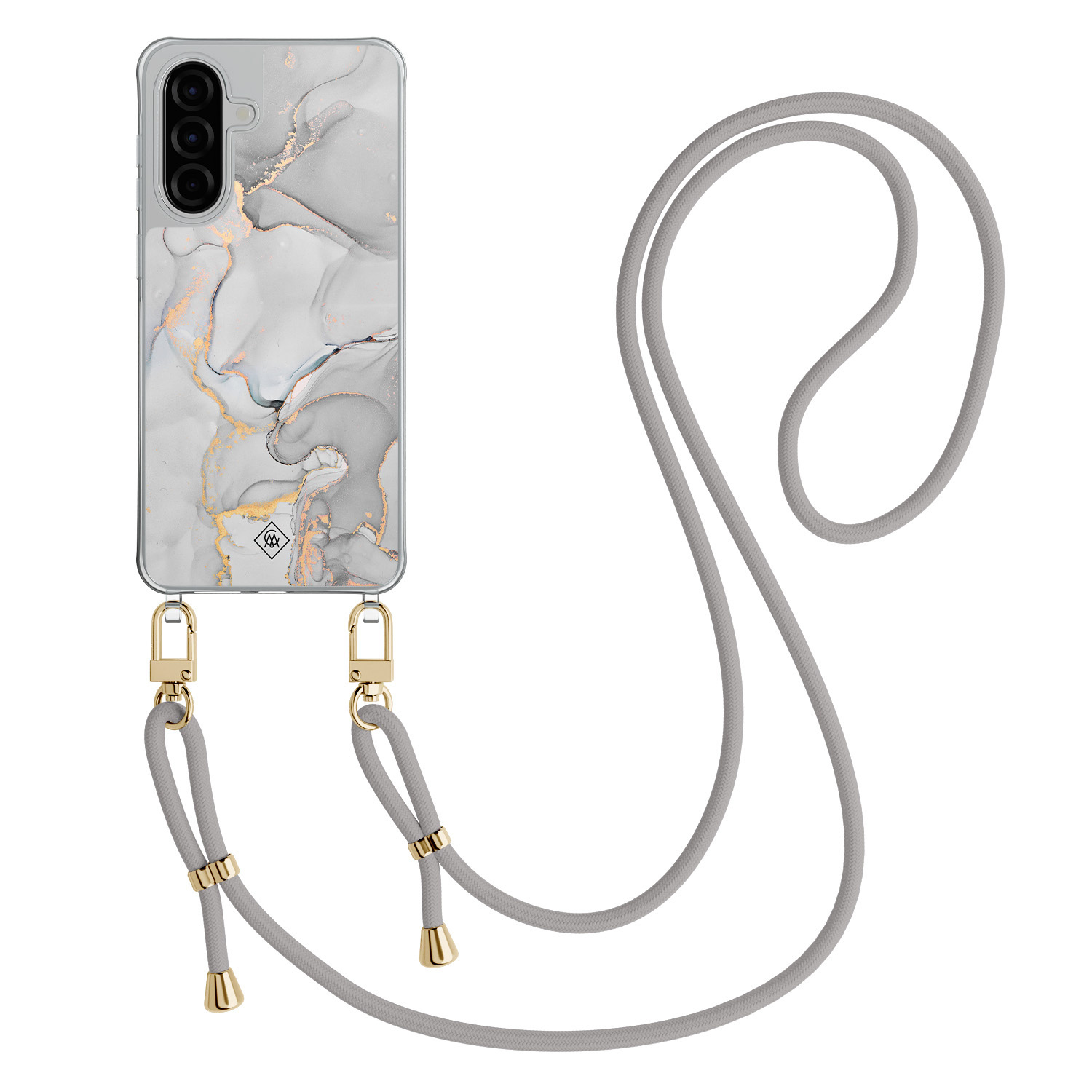 Samsung Galaxy A57 hoesje met grijs koord - Marmer grijs