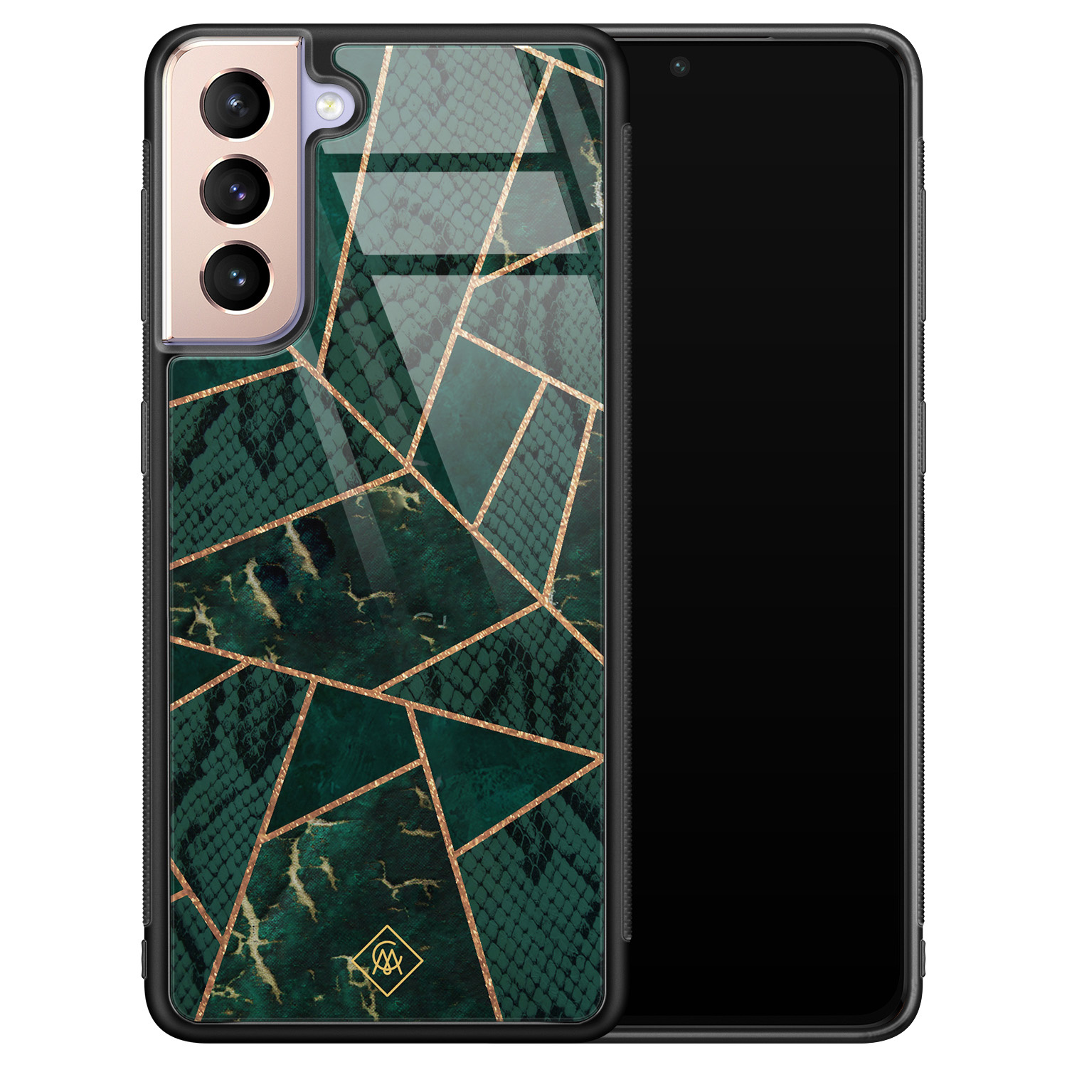 Samsung Galaxy S21 glazen hardcase - Abstract groen