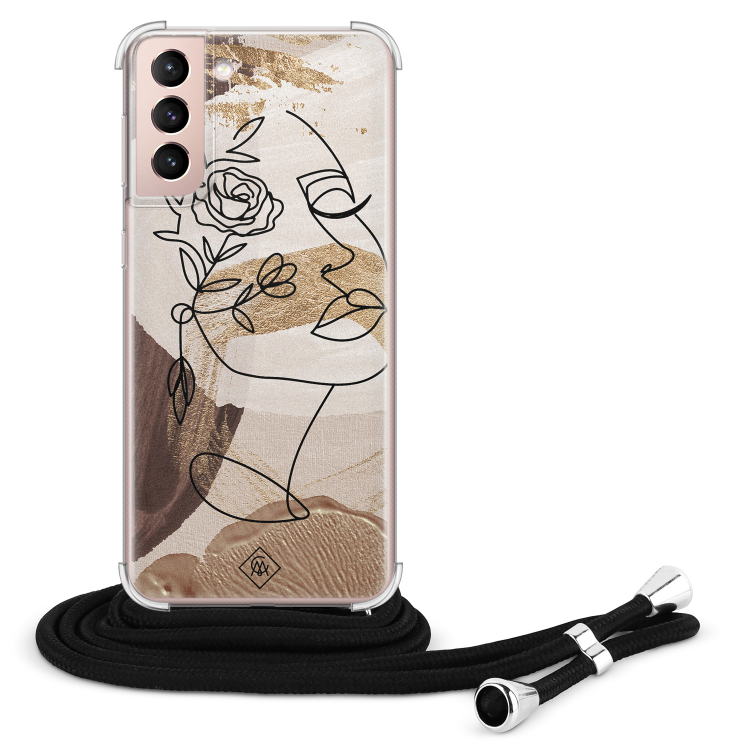 Samsung Galaxy S21 hoesje met koord - Abstract gezicht bruin