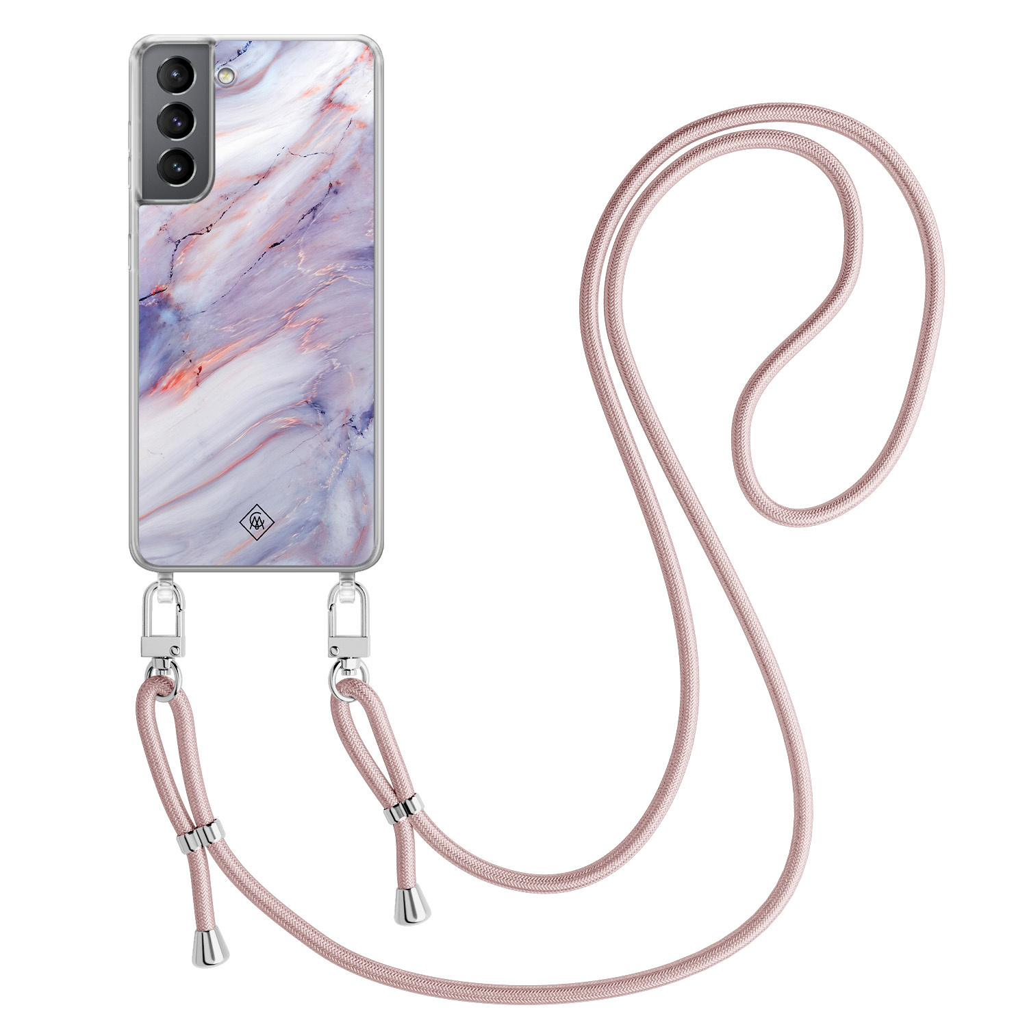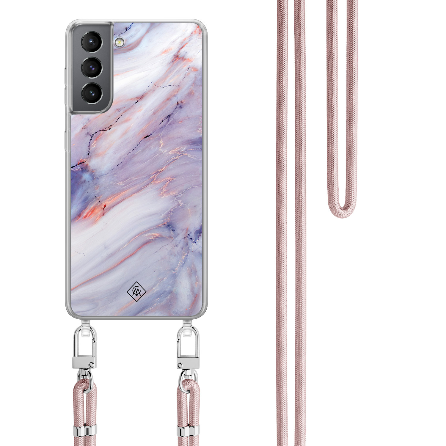 Samsung Galaxy S21 Plus hoesje met rosegoud koord - Marmer paars