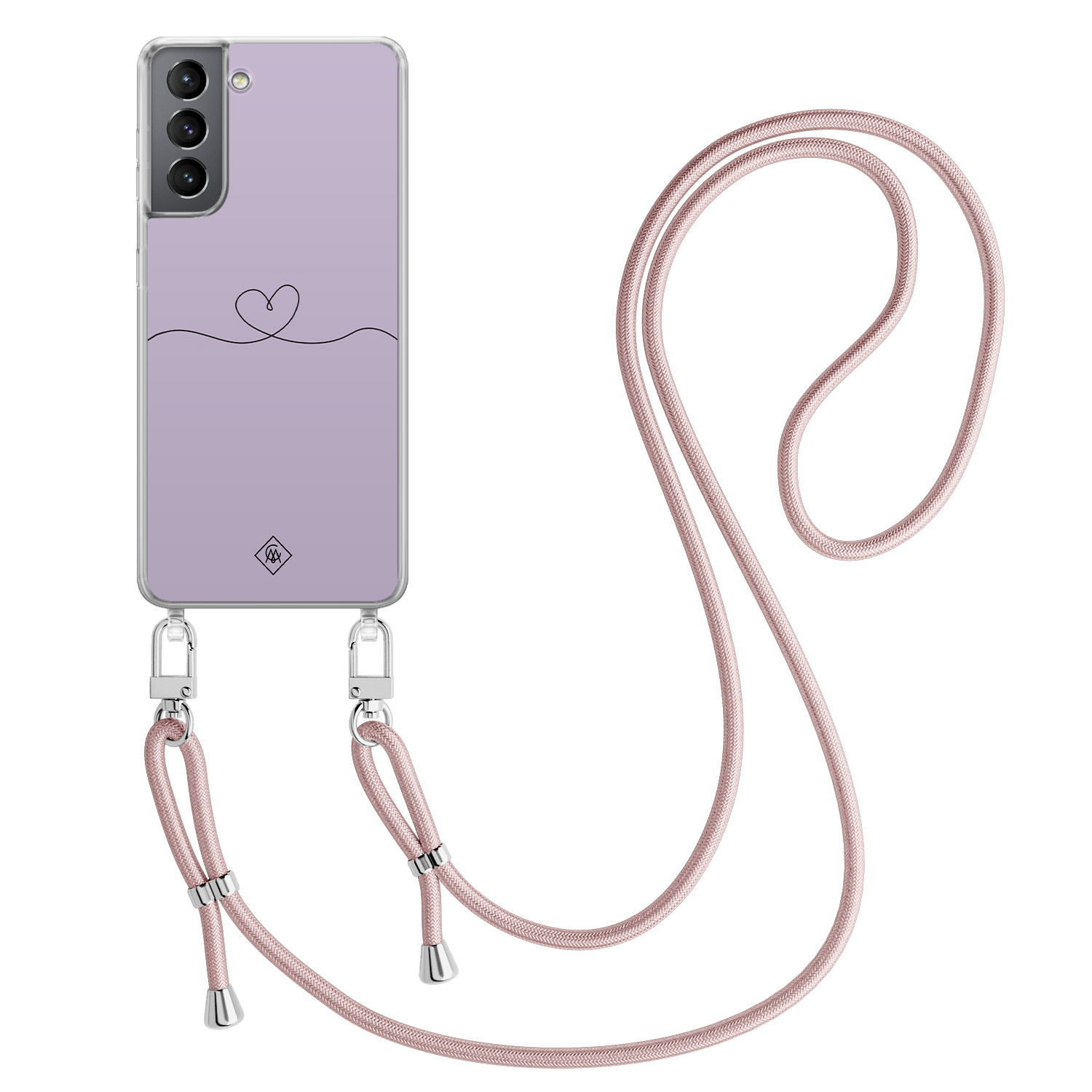 Samsung Galaxy S21 Plus hoesje met rosegoud koord - Hart lila