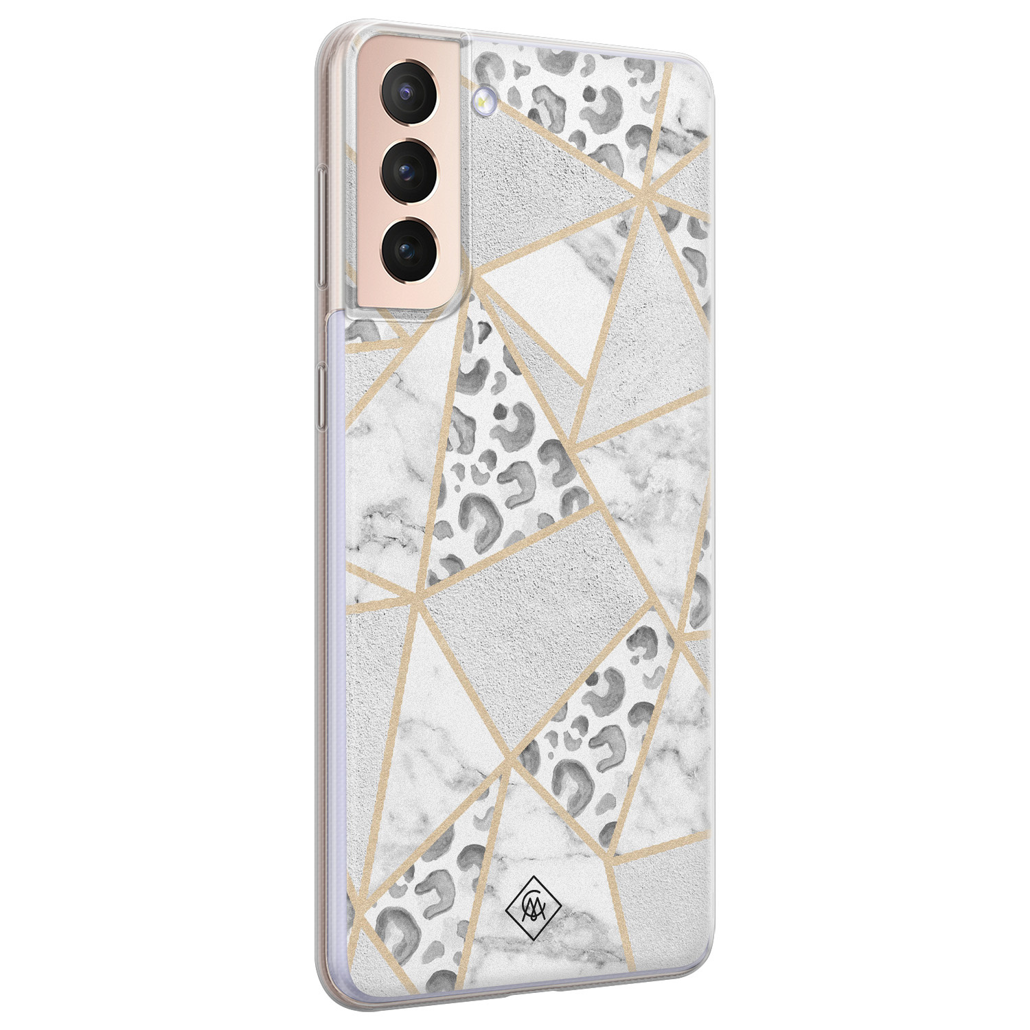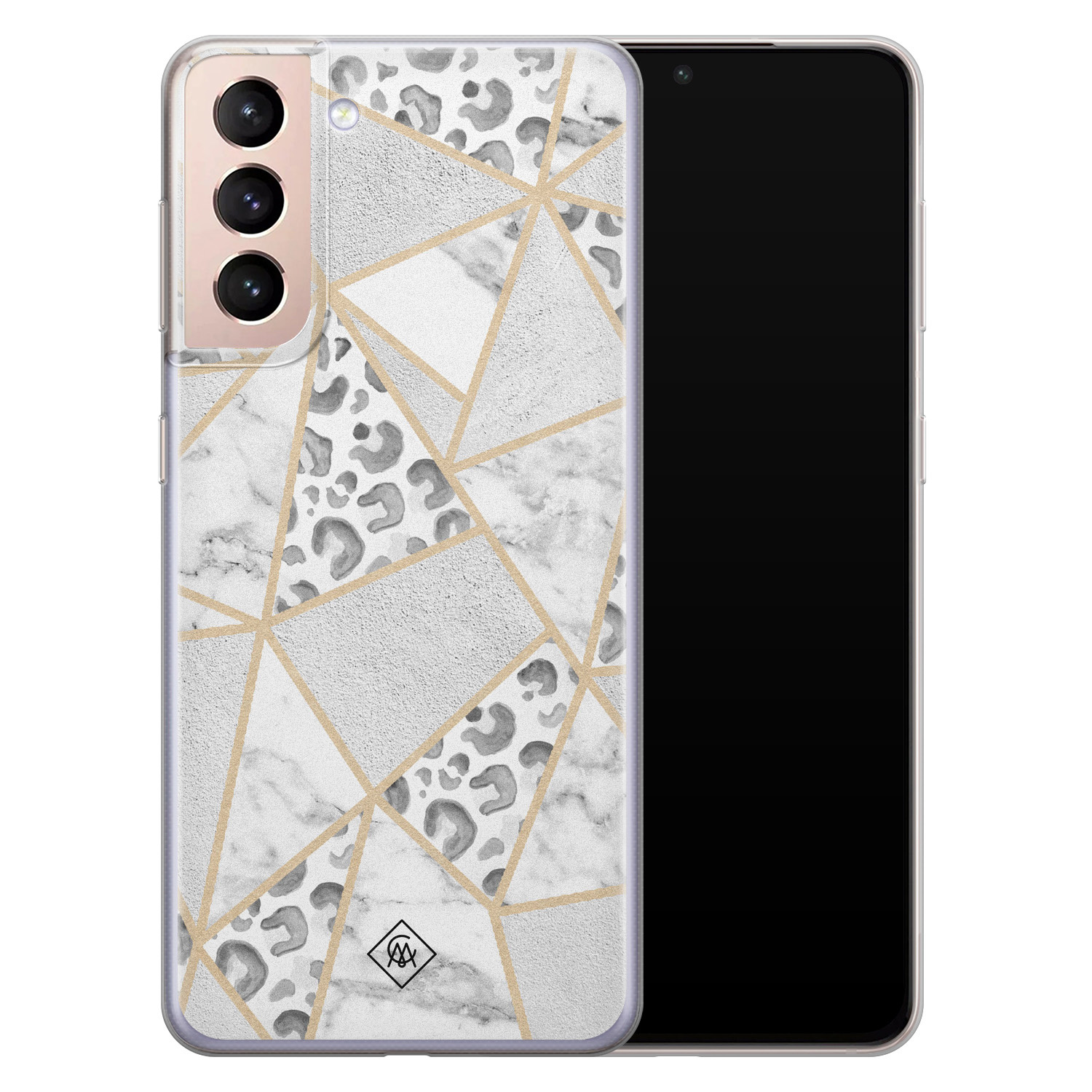Samsung Galaxy S21 Plus siliconen telefoonhoesje - Stone & leopard print