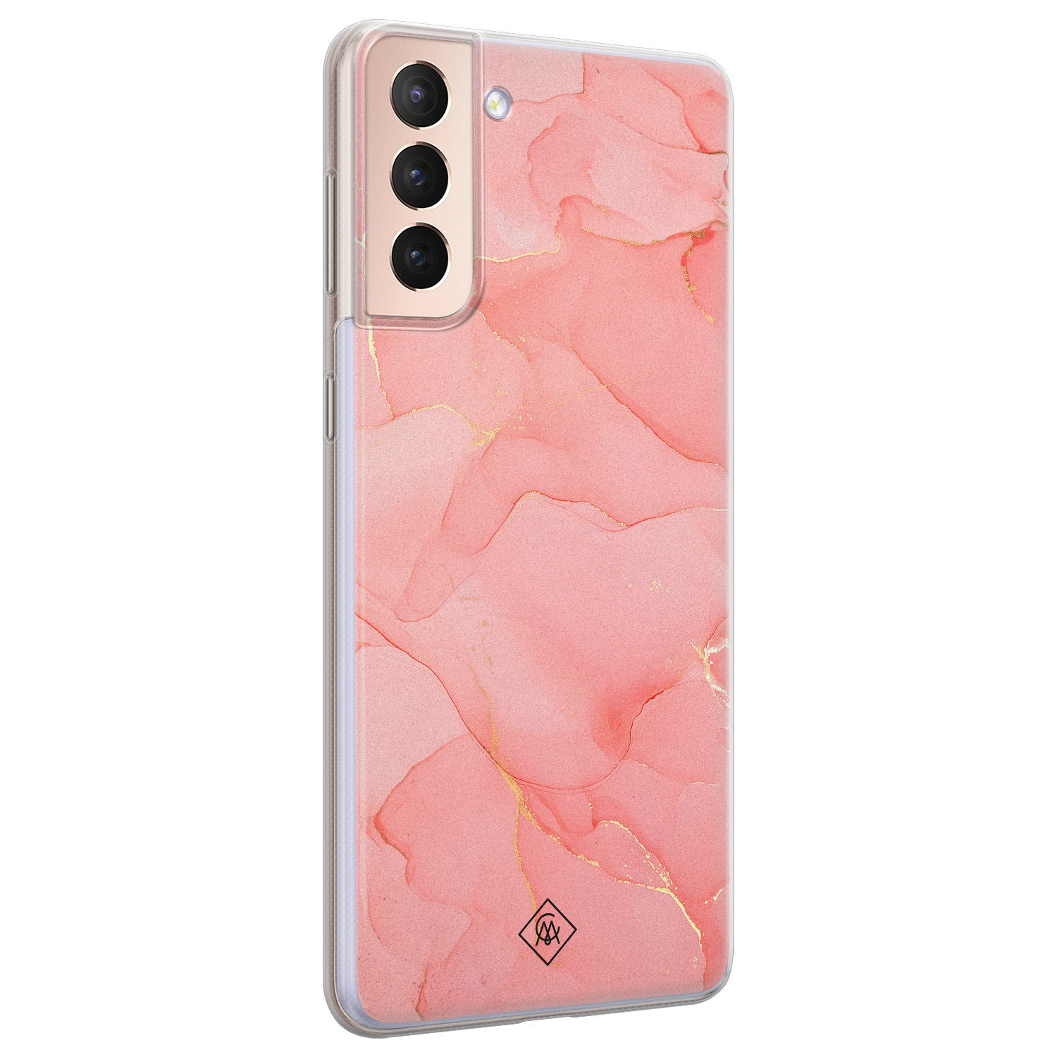 Samsung Galaxy S21 siliconen hoesje - Marmer roze