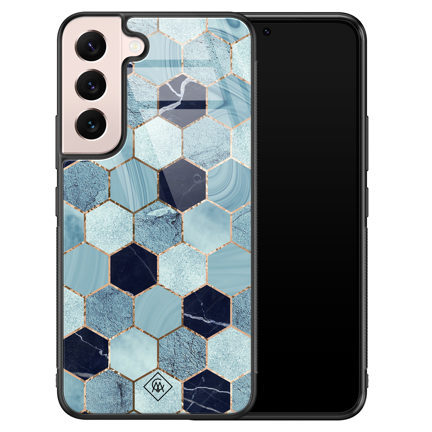 Samsung Galaxy S22 glazen hardcase - Blue cubes