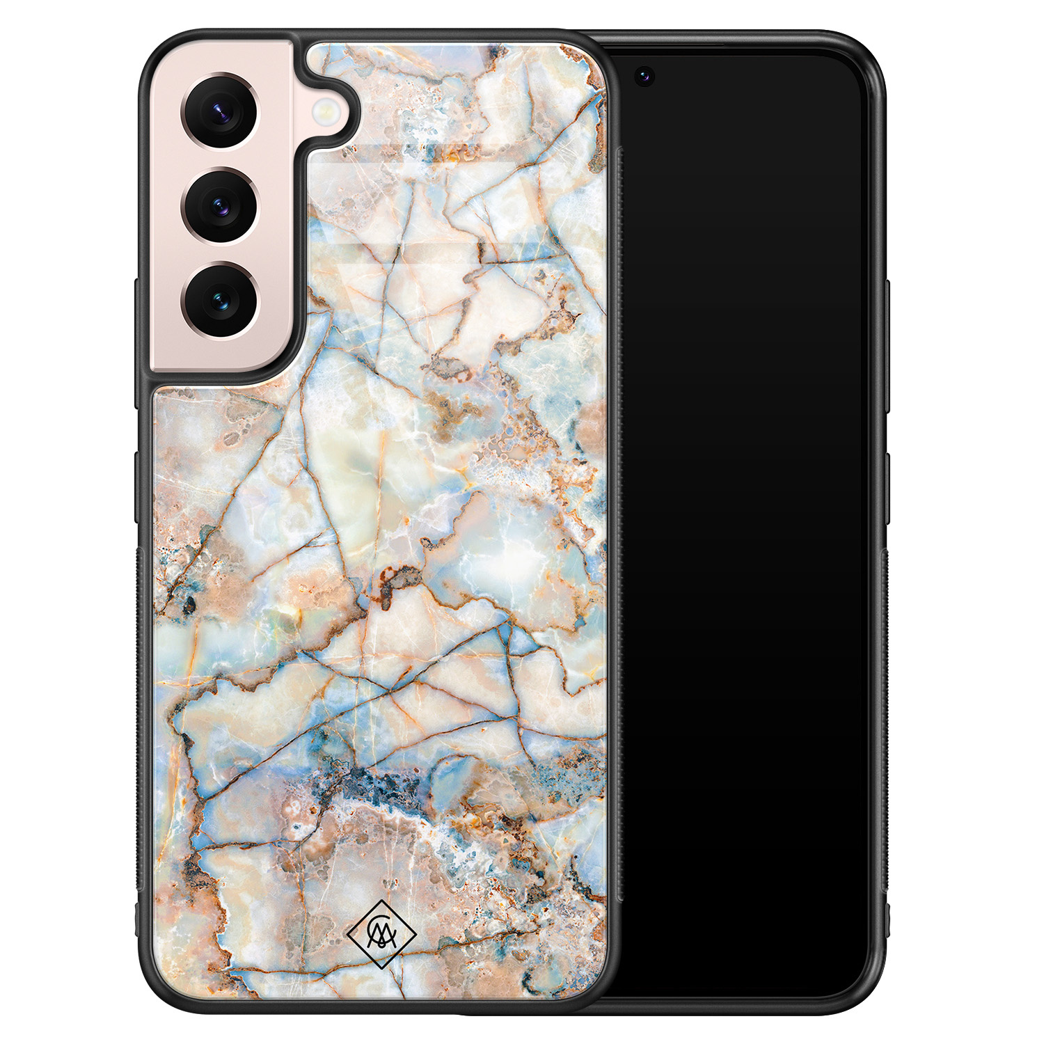 Samsung Galaxy S22 glazen hardcase - Marmer bruin blauw