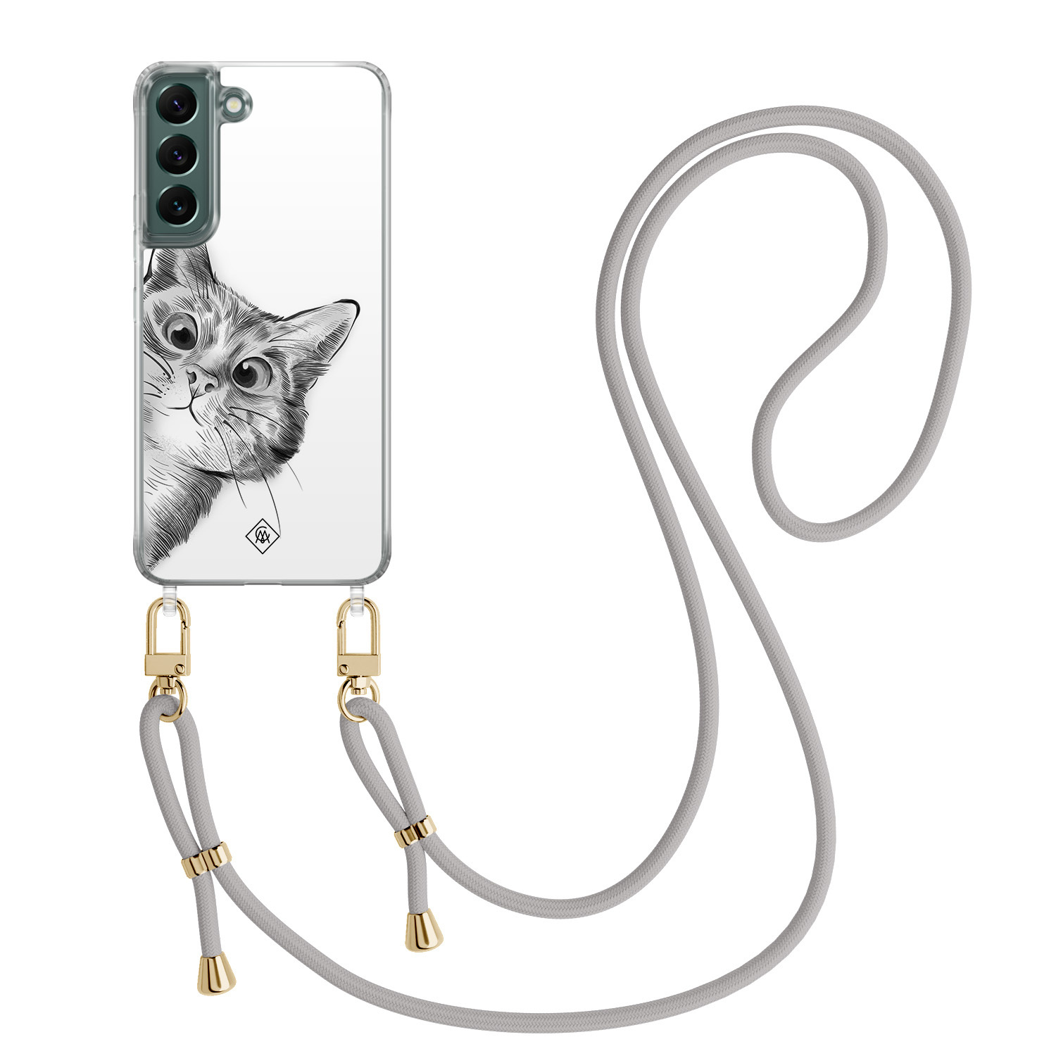 Samsung Galaxy S22 Plus hoesje met grijs koord - Peekaboo kat