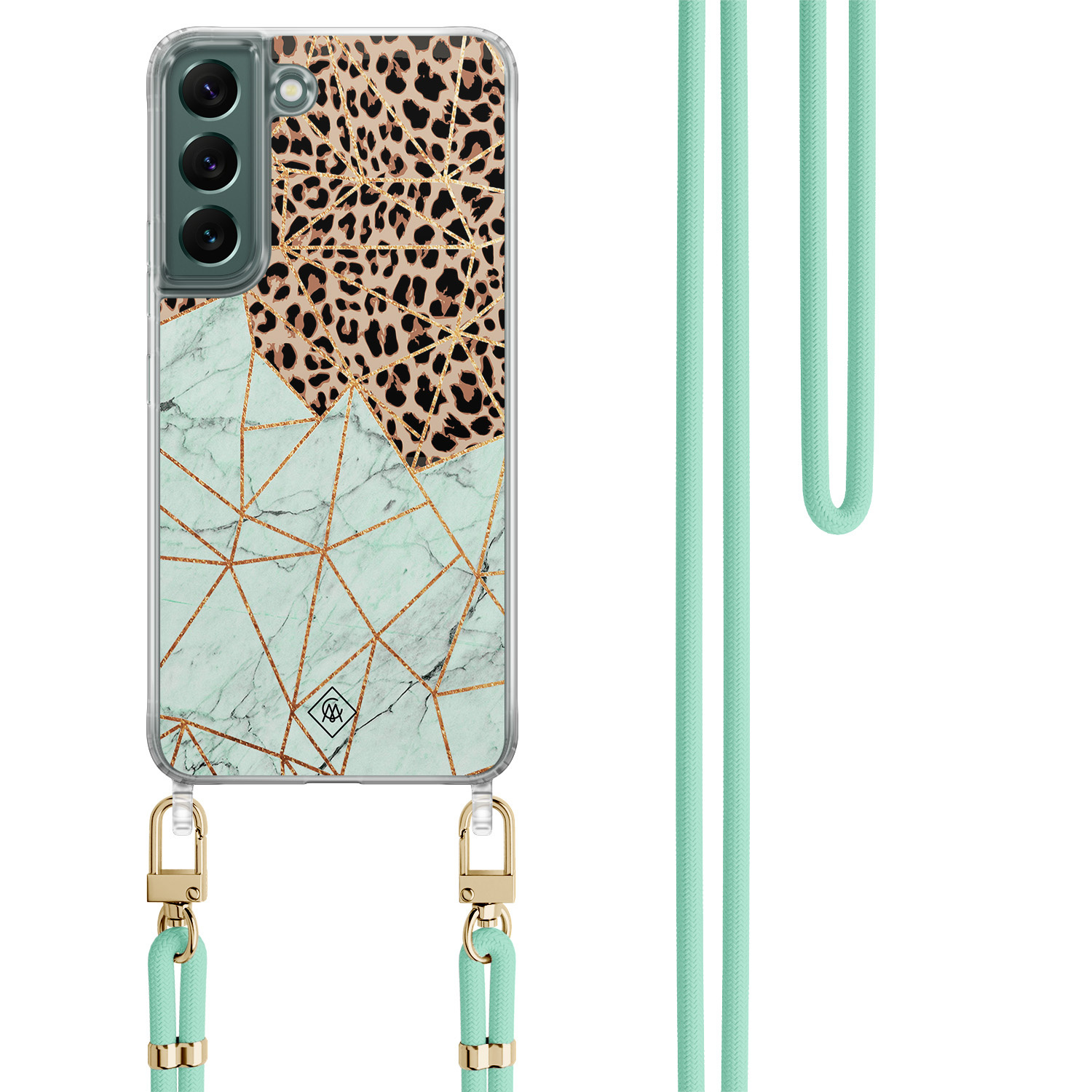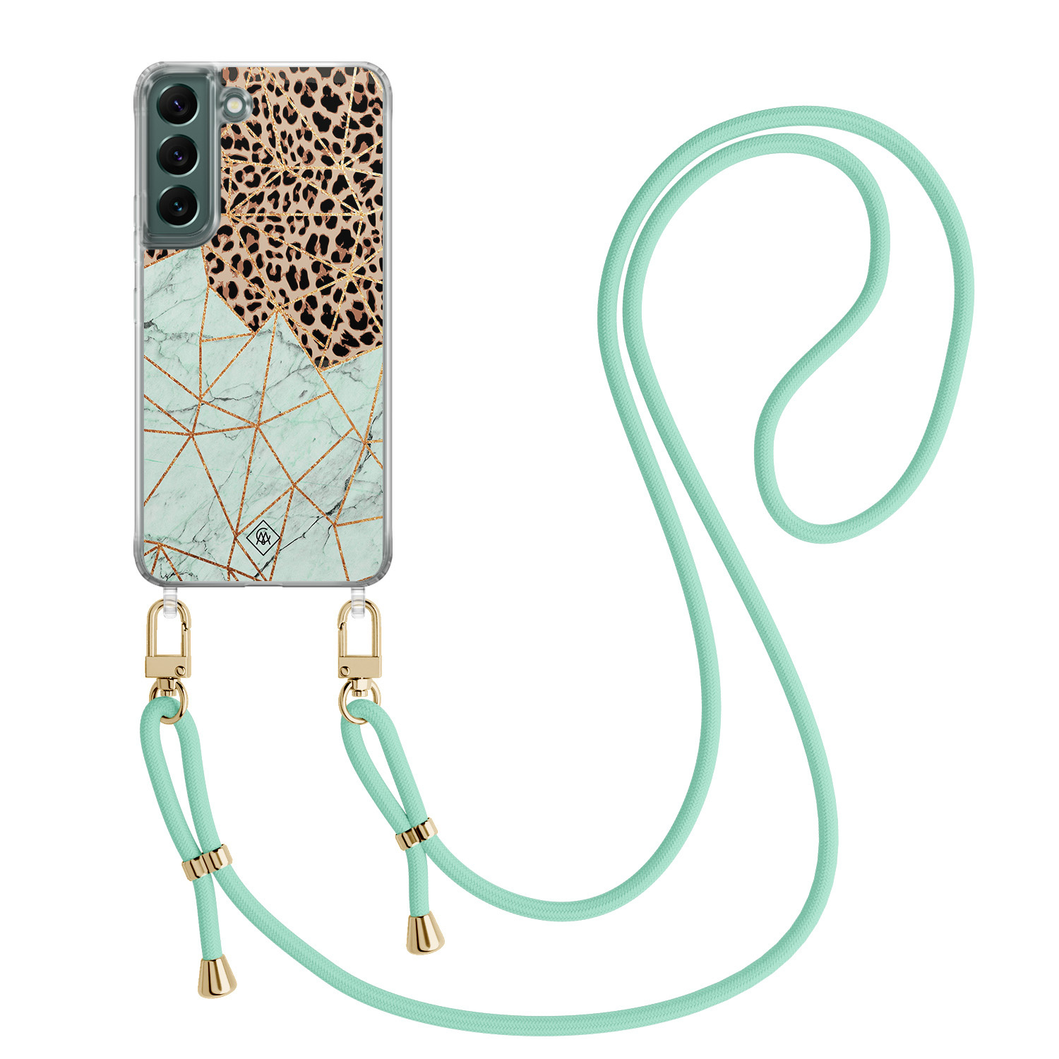 Samsung Galaxy S22 Plus hoesje met mint koord - Luipaard marmer mint