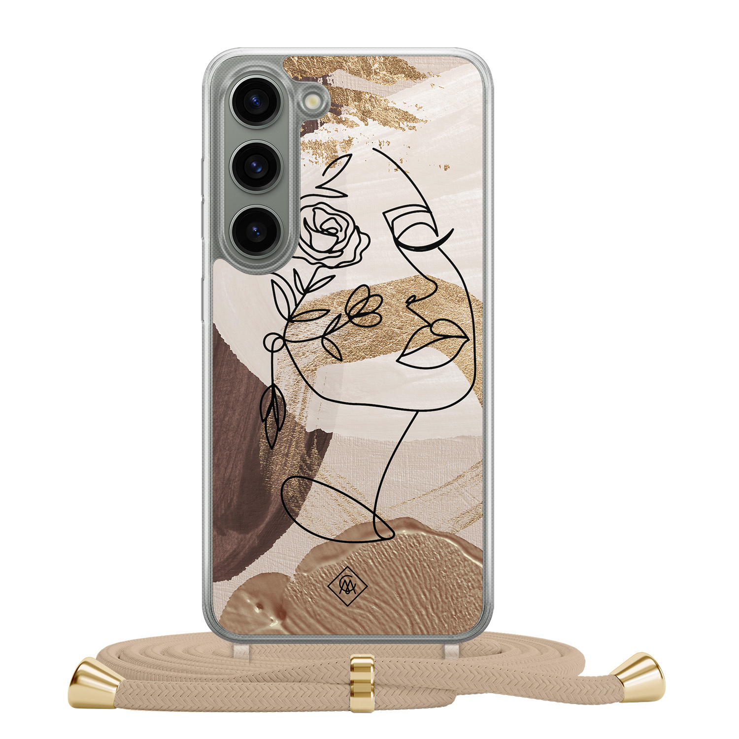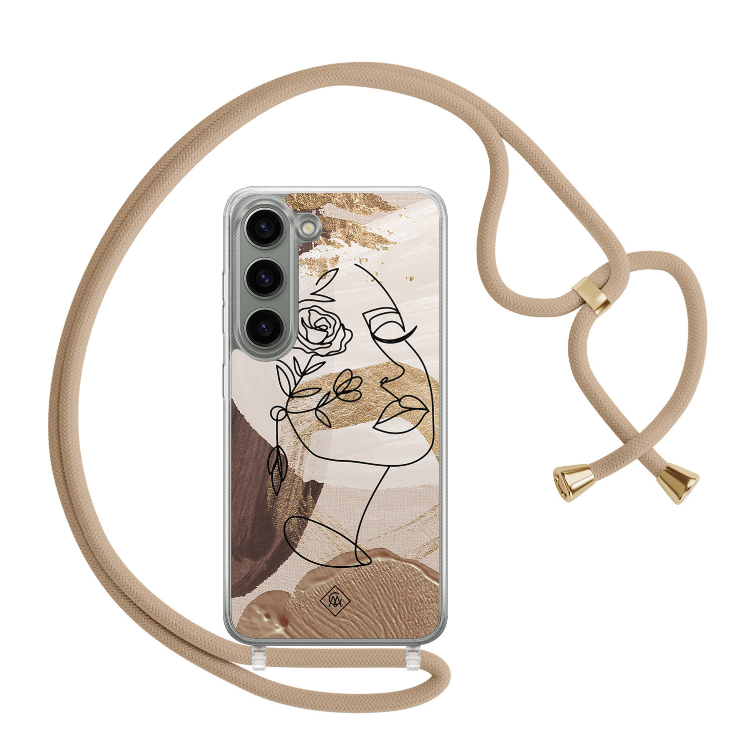 Samsung Galaxy S23 hoesje met beige koord - Abstract gezicht bruin