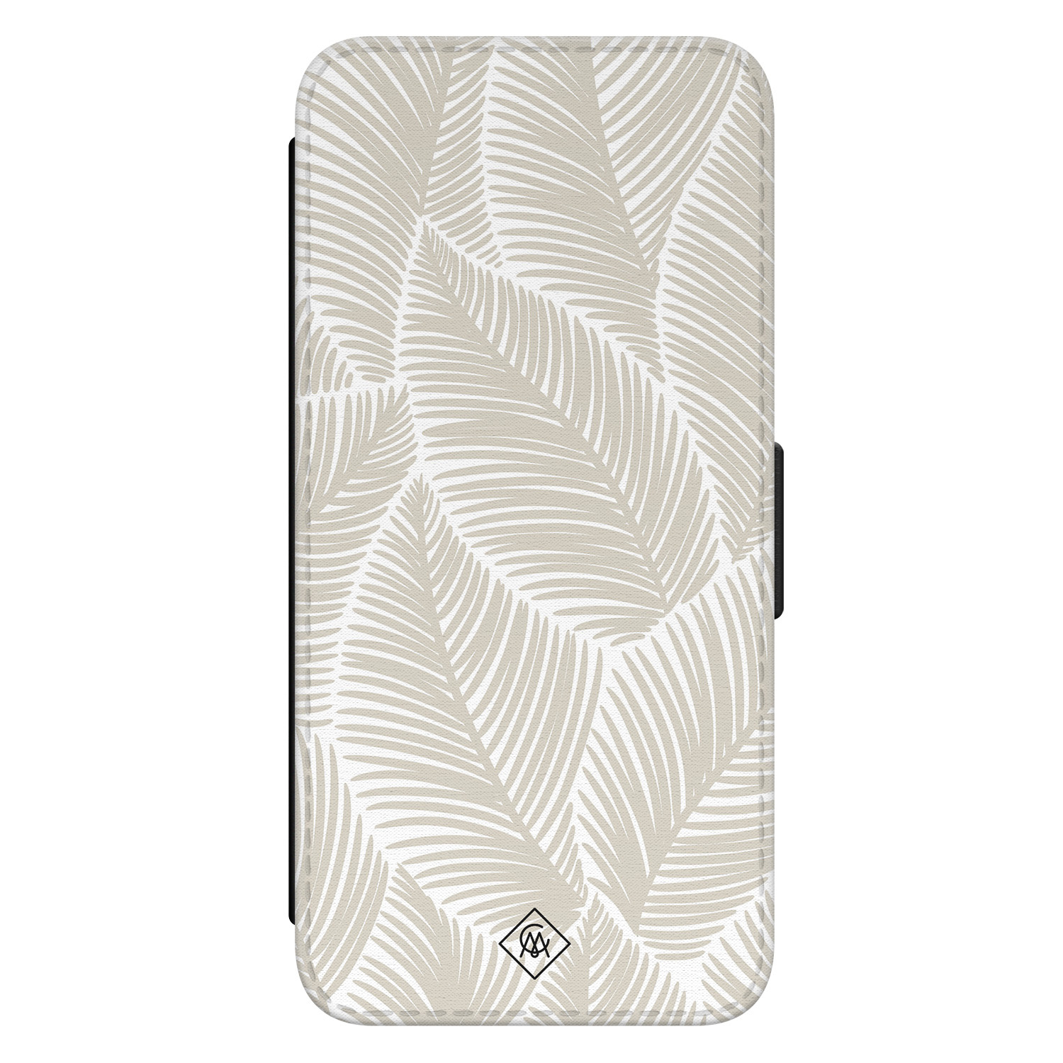 Voeg een vleugje tropen toe met de beige palmbladeren flipcase. twee opbergvakken voor pasjes en een stevige magneetsluiting bieden gemak. De horizontale stand is ideaal voor video's. Je telefoon is rondom optimaal beschermd.