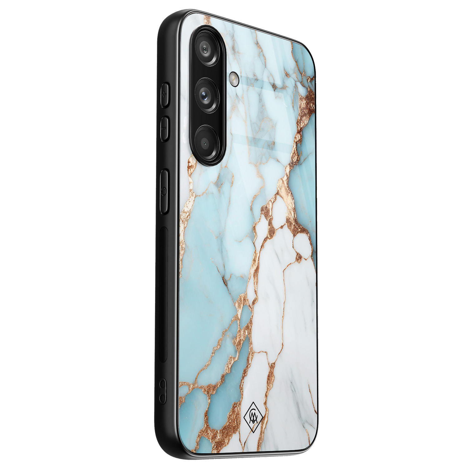 Samsung Galaxy S24 glazen hardcase - Marmer lichtblauw