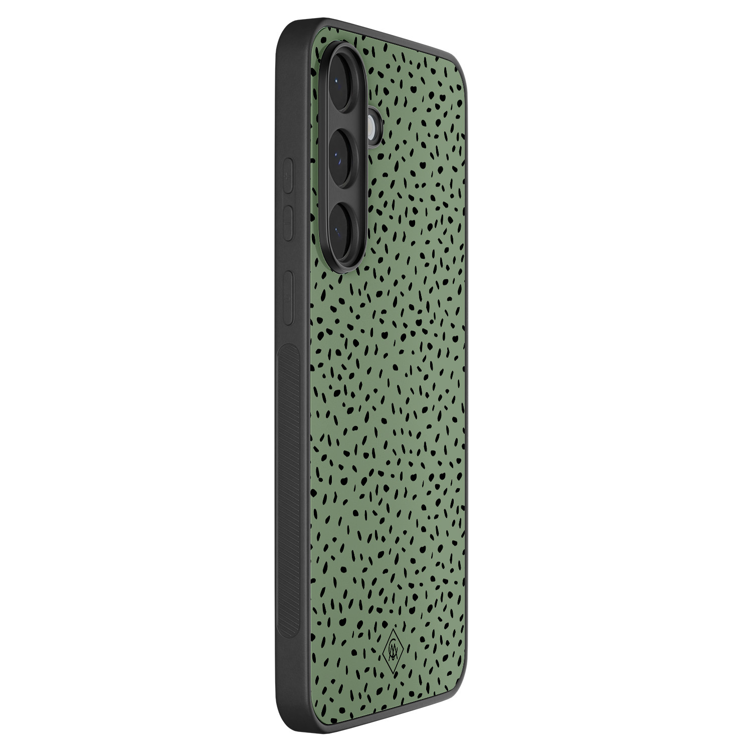 Dit leuke Samsung Galaxy S25 FE hoesje is alleen bij Casimoda verkrijgbaar. Naast het abstracte design met groene stippen, wordt je smartphone ook in stijl beschermd mede dankzij de ijzersterke matzwarte TPU bumper.