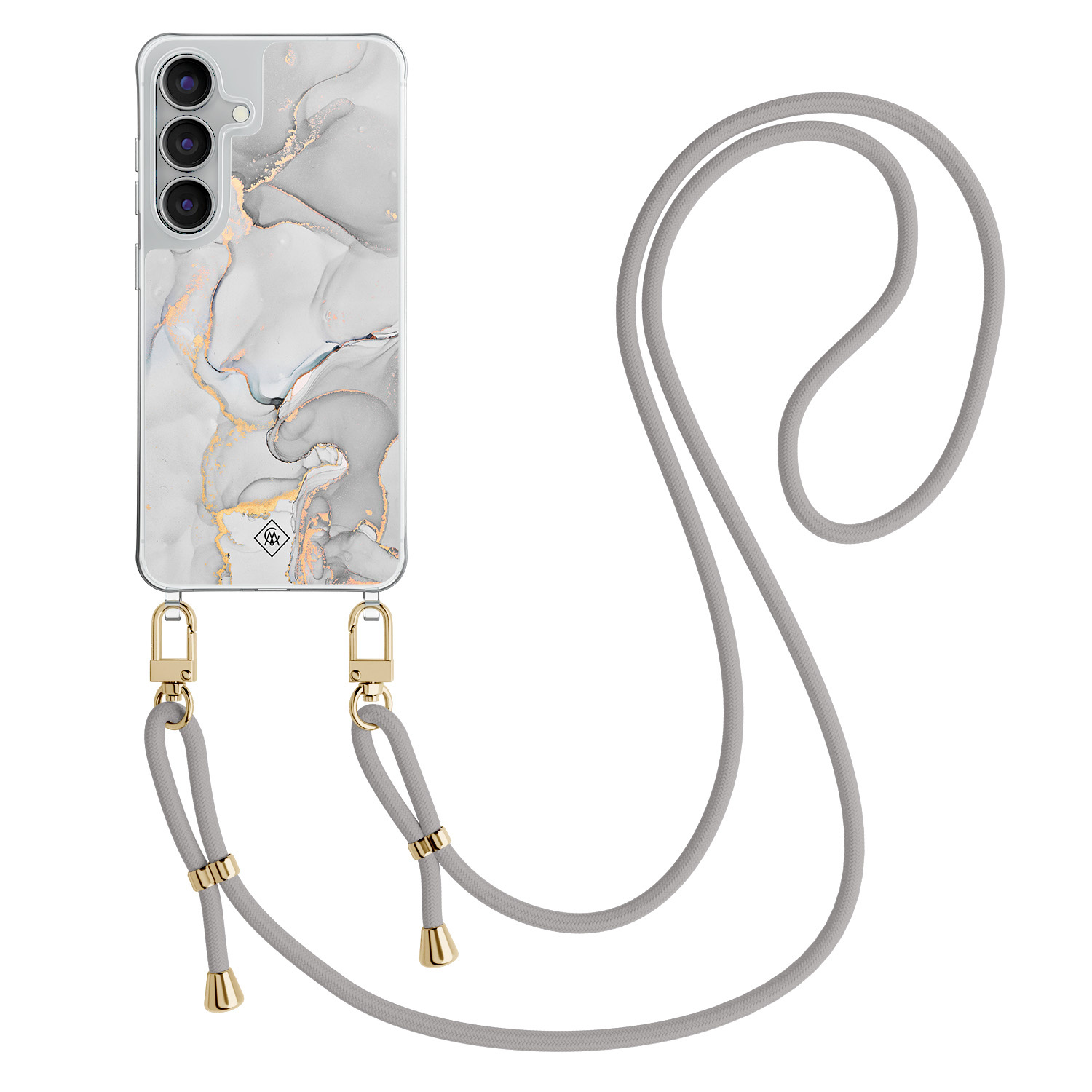 Samsung Galaxy S25 FE hoesje met grijs koord - Marmer grijs