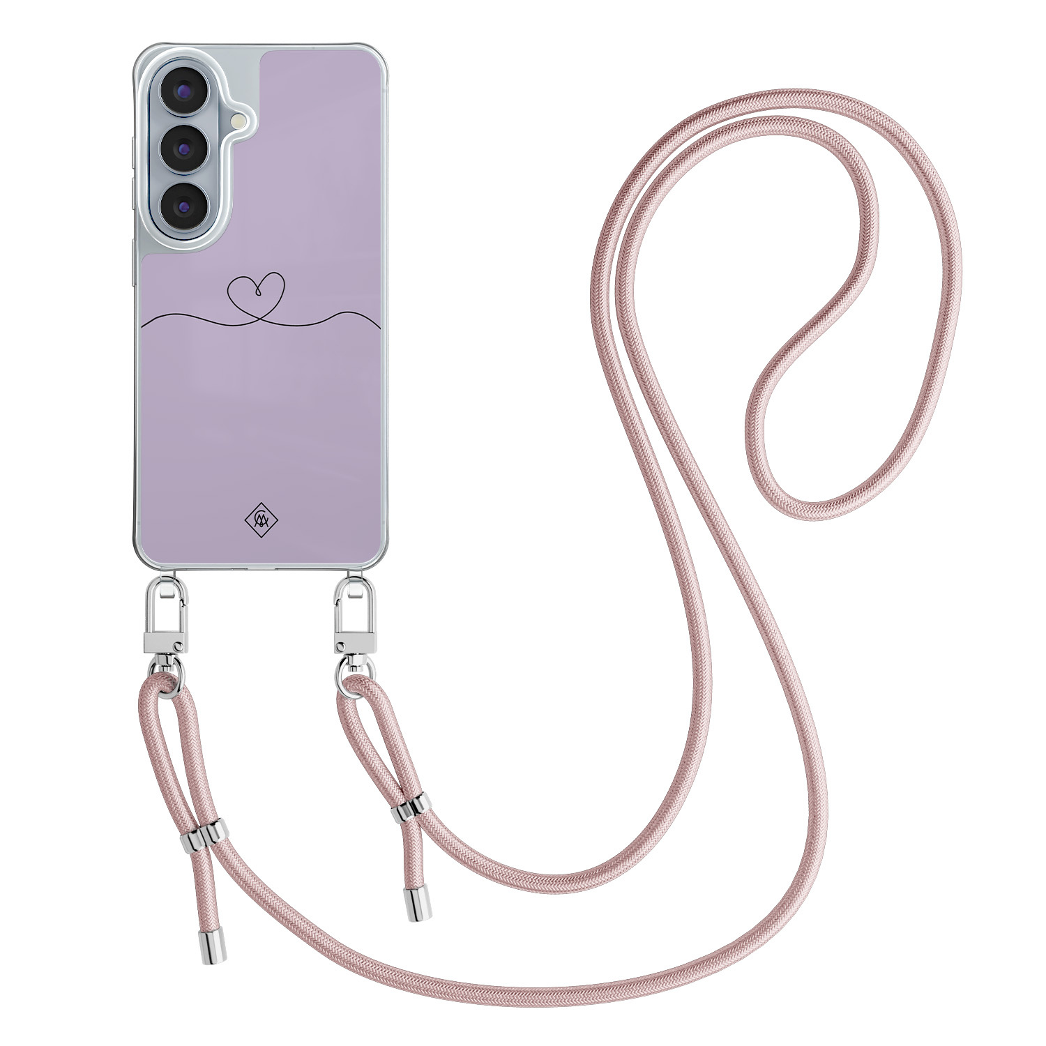 Samsung Galaxy S26 hoesje met rosegoud koord - Hart lila