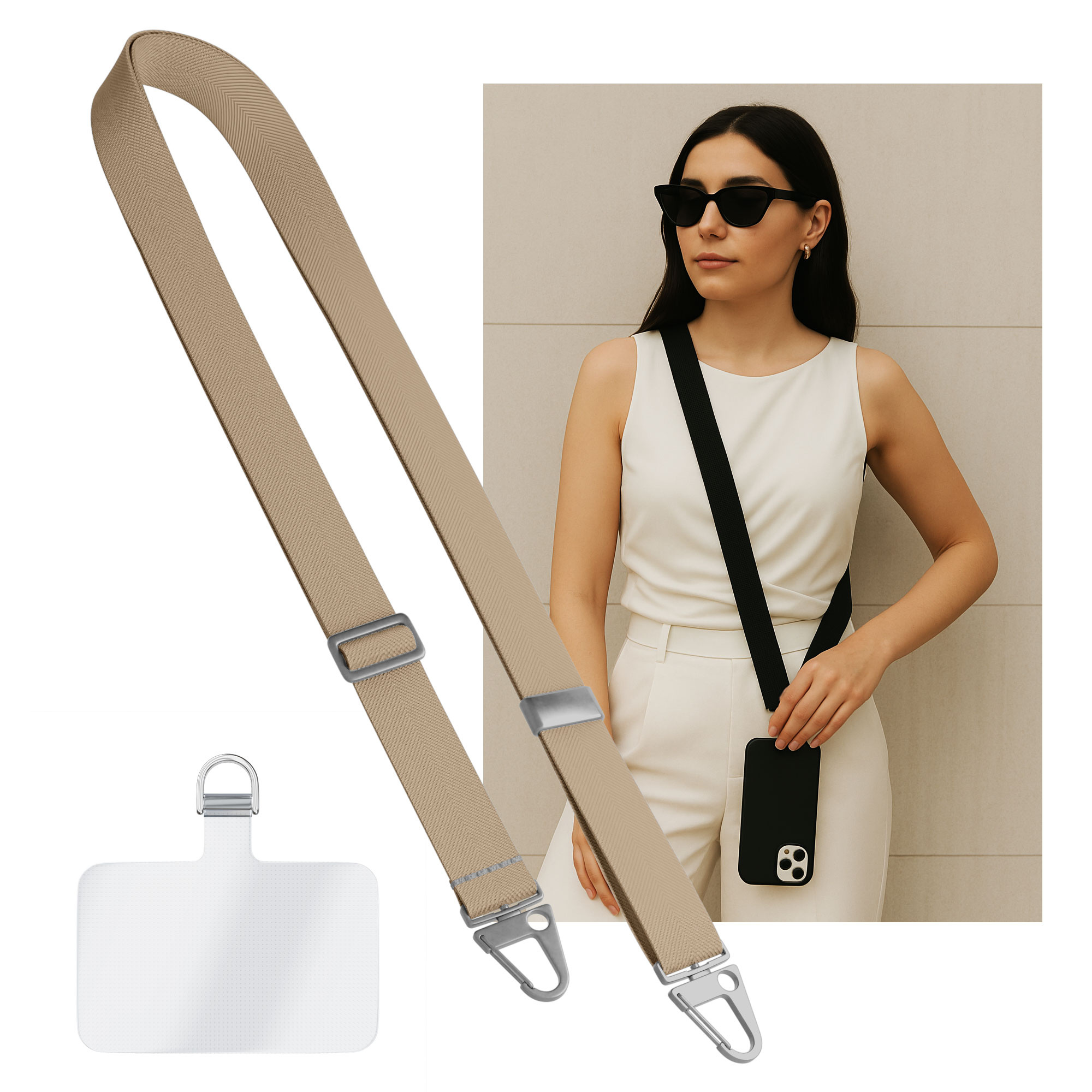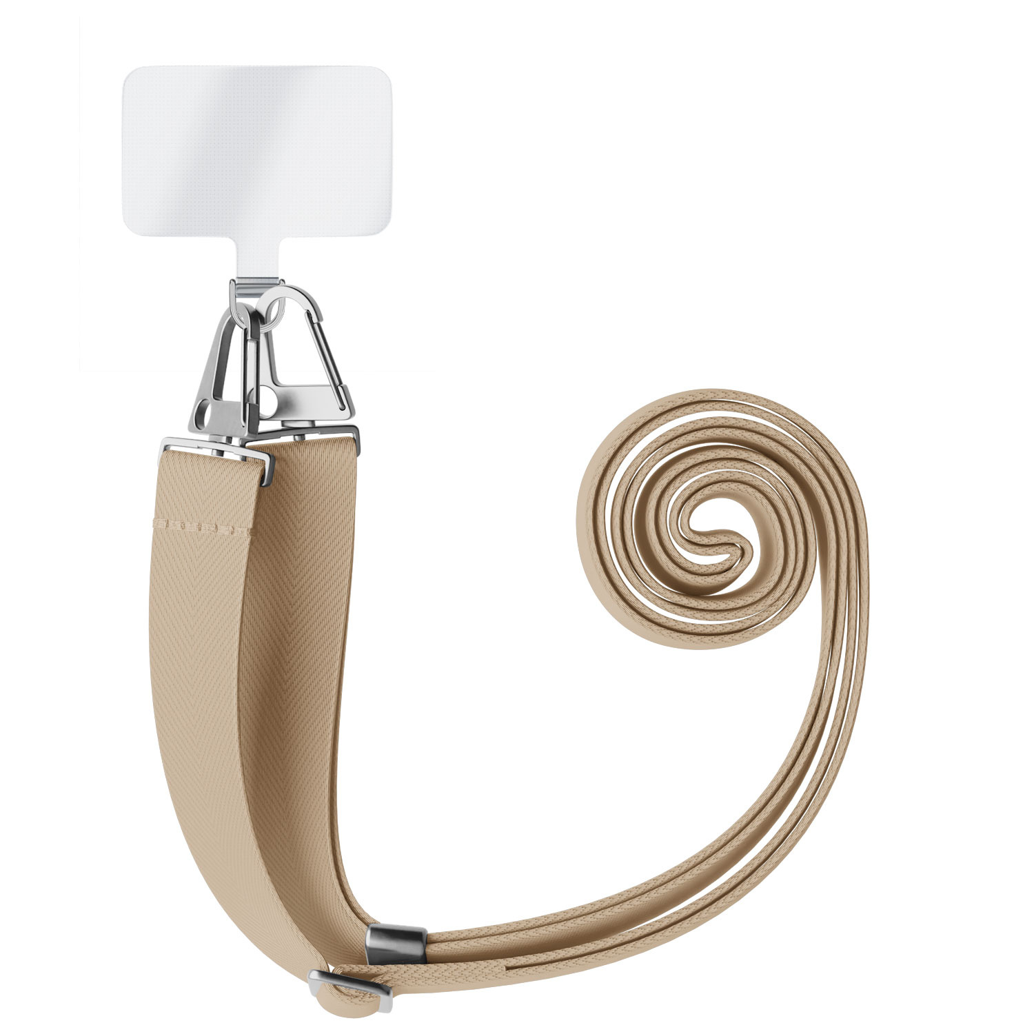Universeel verstelbaar telefoonkoord met zilveren sluiting - Beige